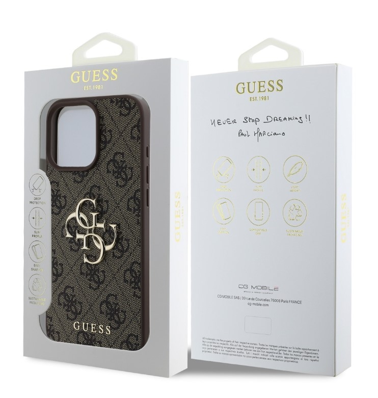 Prémiový zadní kryt Guess PU 4G Metal Logo se vyznačuje elegantním, charakteristickým 4G vzorem, doplněným o logo GUESS. Kryt je vyrobený z lehkého a odolného polyuretanu (PU) s povrchovou úpravou z PU kůže a nabízí tak nejen skvělou ochranu telefonu, ale také pohodlí při používání.