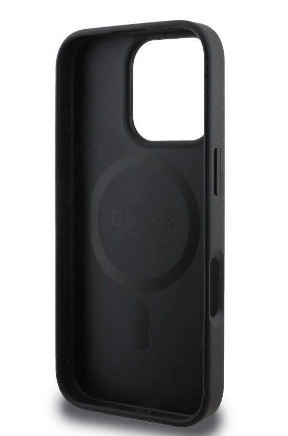 Guess PU 4G Peony MagSafe Zadní Kryt pro iPhone 16 Pro Black