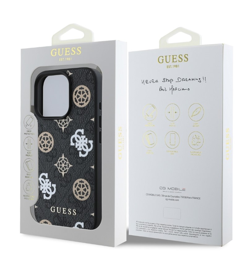 Tento kryt podporuje technologii MagSafe, což znamená, že je kompatibilní s bezdrátovým nabíjením a dalšími MagSafe doplňky. Guess „4G“ elegantní potisk s kontrastním Peony logem nabízí nejen nevšední, ale také luxusní vzhled.
