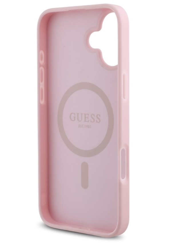 Guess PU Grained 4G Small Metal Logo MagSafe Zadní Kryt pro iPhone 16 – růžová
