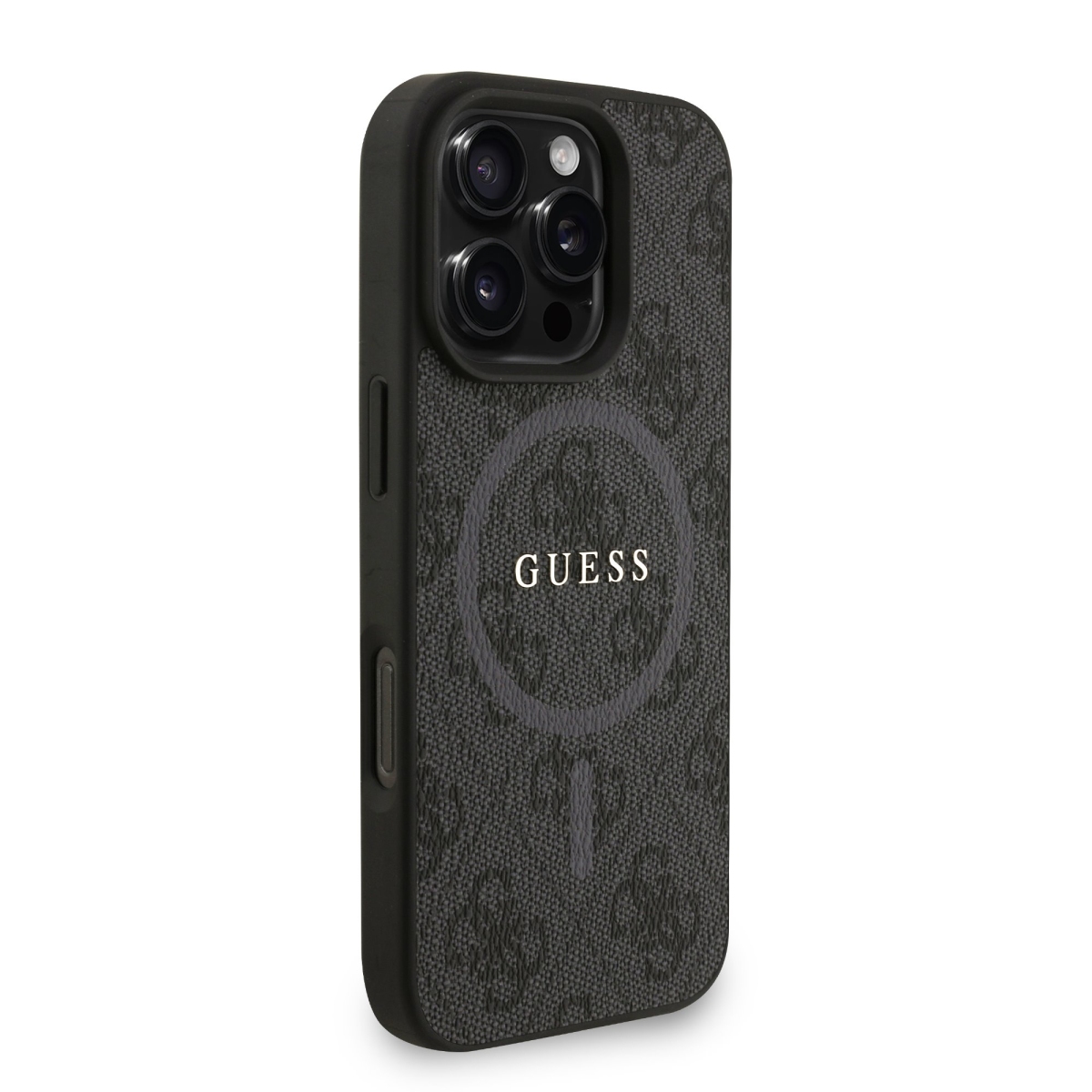 Guess PU Leather 4G Colored Ring Strap MagSafe Zadní Kryt pro iPhone 16 Pro – černá