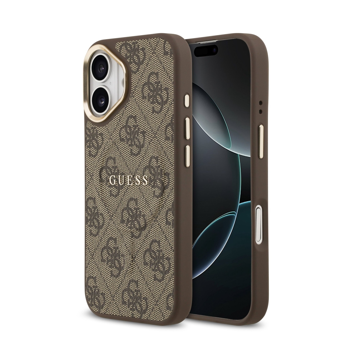 Guess PU Leather 4G Gold Frame MagSafe Zadní Kryt pro iPhone 17 – hnědá