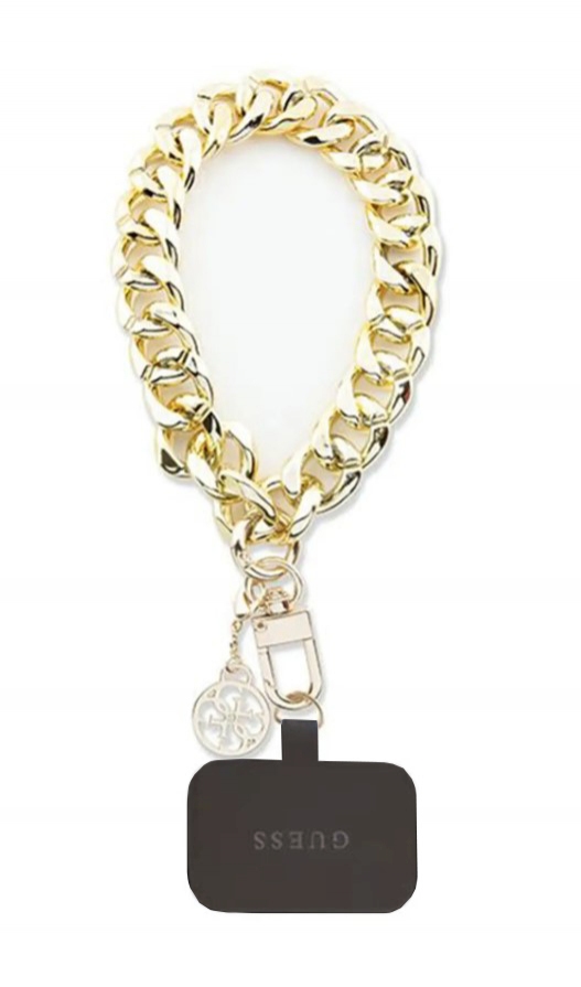 Světle zlatý doplněk je vyroben z lesklého a odolného kovu. Díky rafinované estetice Guess bude váš smartphone vypadat luxusně.