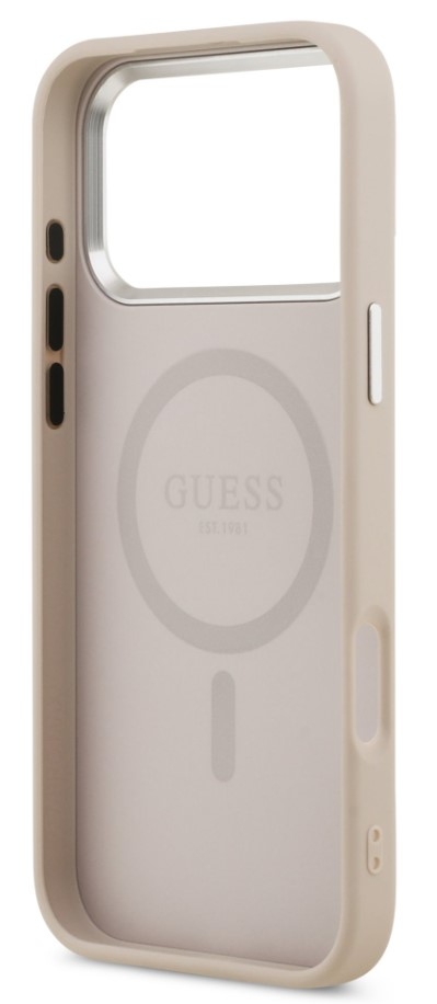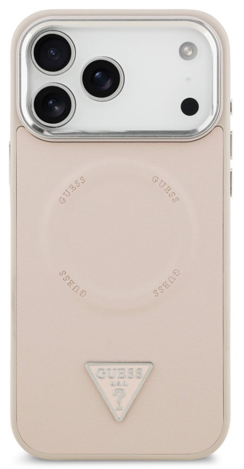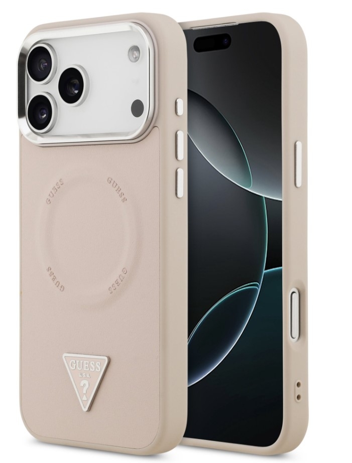Stylový kryt Guess (GUHMP17XPSDTSCMP) s MagSafe technologií kombinuje ochranu a módní design. Povrch z PU kůže dobře padne do ruky a neklouže, zatímco ikonické triangle logo dodává jedinečný vzhled. Perfektně sedí na telefonu a je připravený na každodenní použití i bezdrátové nabíjení.