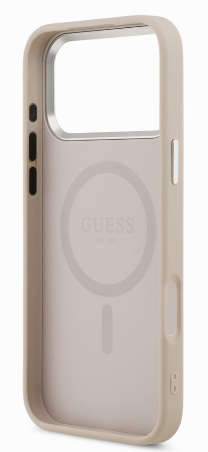 Prémiový zadní kryt Guess (GUHMP17XPSAREGSP) s MagSafe kombinuje styl a ochranu. Povrch s texturou zrnité kůže dobře padne do ruky, neklouže a chrání před poškrábáním. Podporuje bezdrátové nabíjení a doplňky MagSafe. Elegantní doplněk s kovovým logem pro každodenní použití i výjimečné příležitosti.