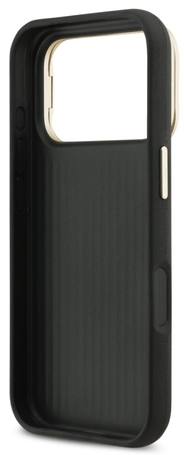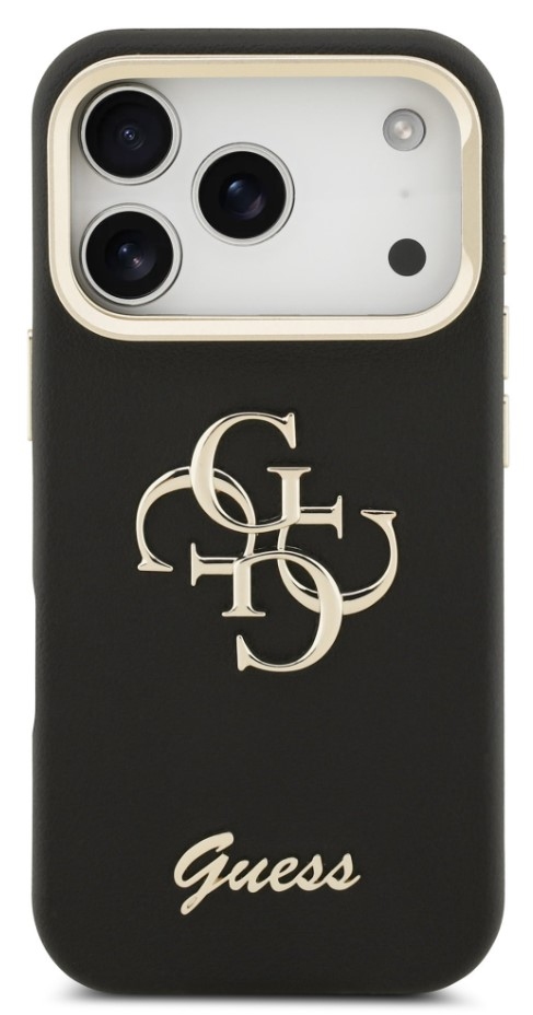 Guess zadní kryt pro iPhone 17 Pro, PU Grained 4G Logo Stand Camera Frame - černá