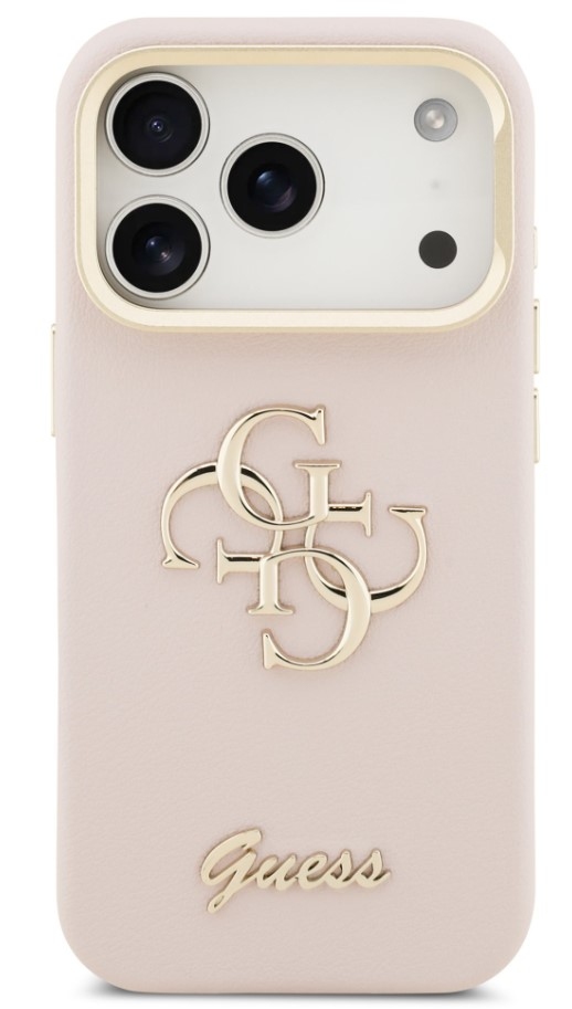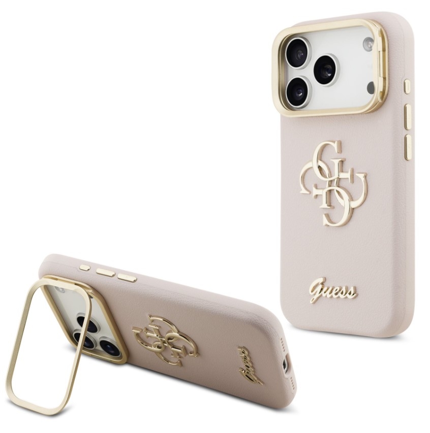 Guess zadní kryt pro iPhone 17 Pro, PU Grained 4G Logo Stand Camera Frame - růžová