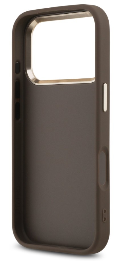Guess zadní kryt pro iPhone 17 Pro, PU Kůže 4G Metal Logo Gold Frame - hnědá
