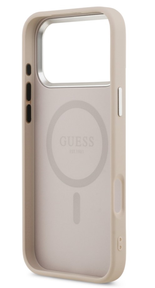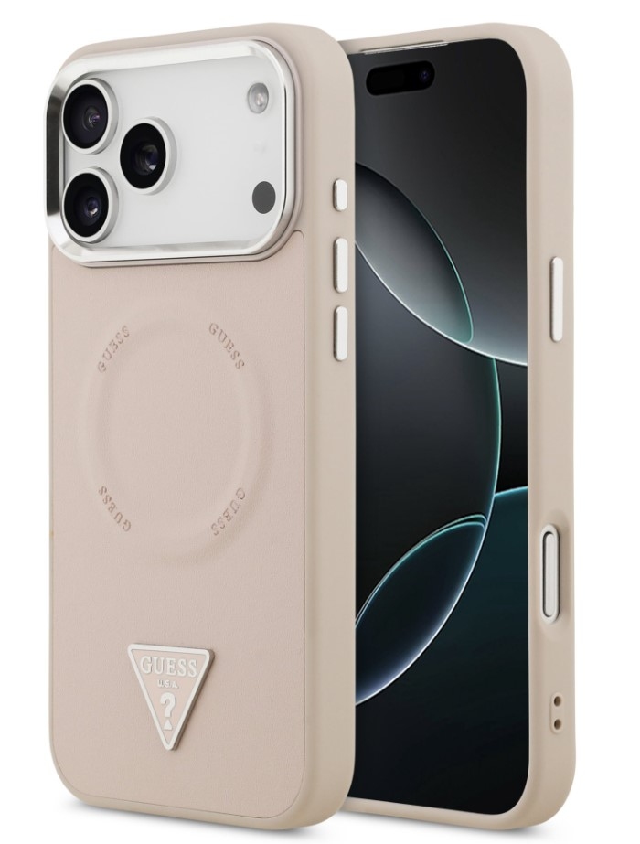 Stylový kryt Guess (GUHMP17LPSDTSCMP) s MagSafe technologií kombinuje ochranu a módní design. Povrch z PU kůže dobře padne do ruky a neklouže, zatímco ikonické triangle logo dodává jedinečný vzhled. Perfektně sedí na telefonu a je připravený na každodenní použití i bezdrátové nabíjení.