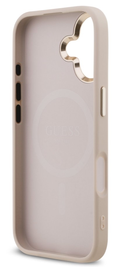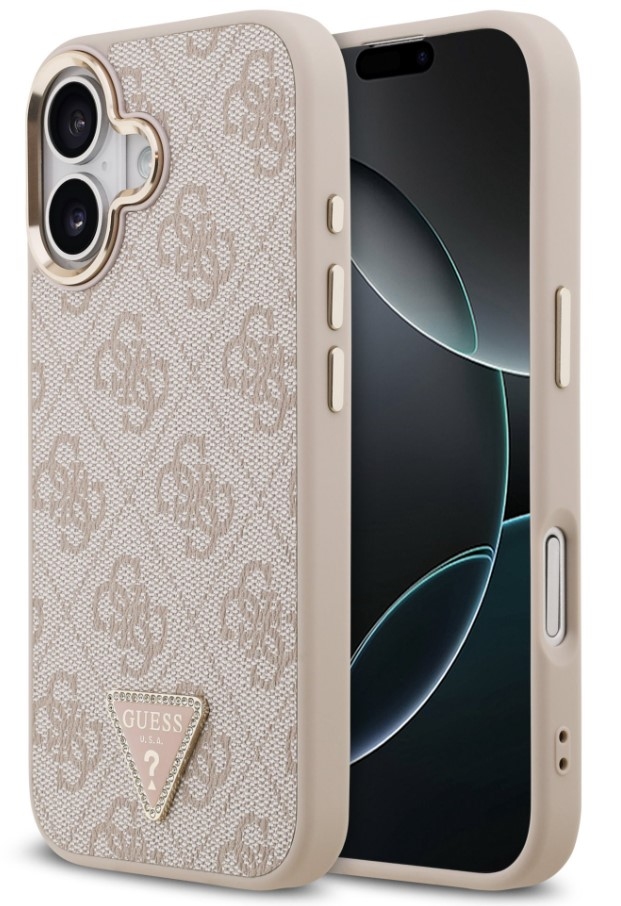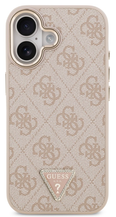 Guess zadní kryt pro iPhone 17, PU Kůže 4G Triangle Logo Gold Frame MagSafe - růžová