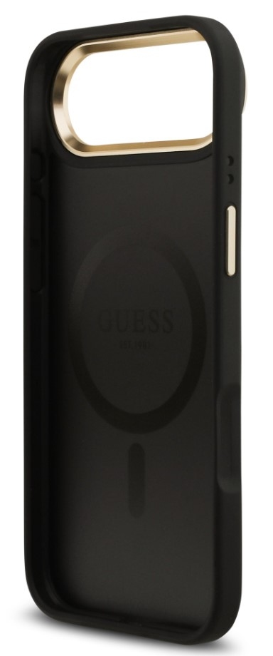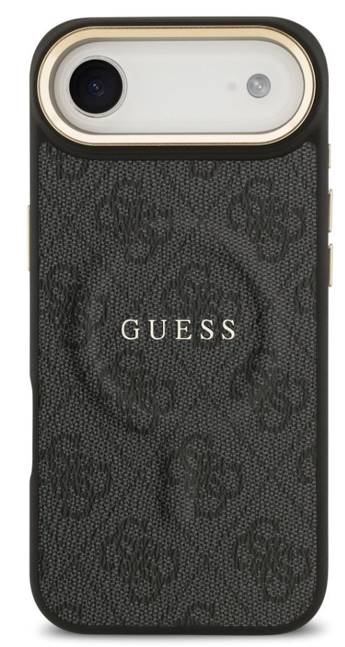 Elegantní kryt Guess (GUHMP17MP4MSEGCK) s potiskem 4G a zlatým rámečkem fotoaparátu nabízí stylovou ochranu i plnou kompatibilitu s MagSafe. PU kůže s protiskluzovým povrchem se příjemně drží a kryt perfektně padne na telefon. Luxusní doplněk pro každodenní použití.