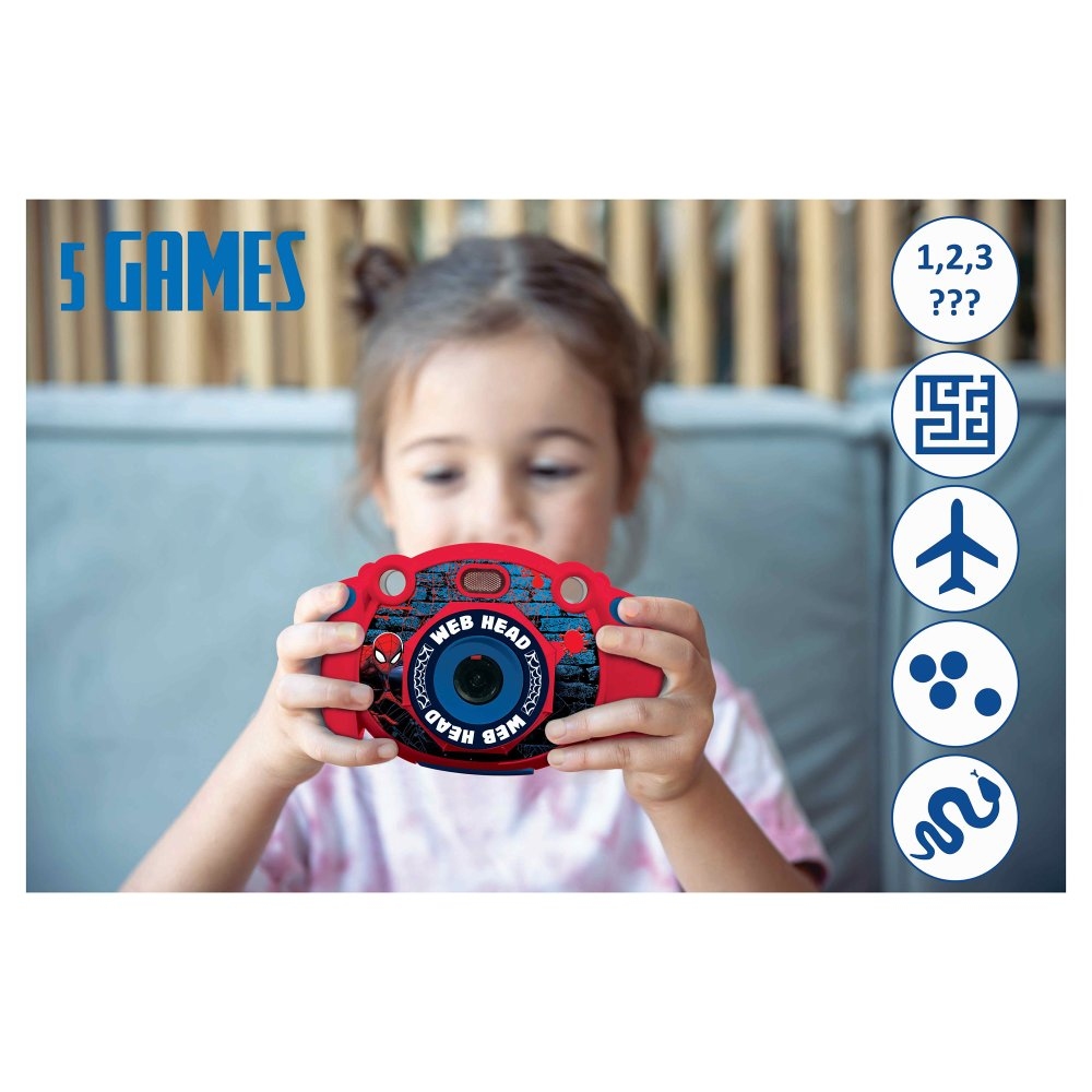 Spider-Man alias Peter Parker je jedním z nejikoničtějších superhrdinů od Marvel Comics! Jeho jedinečné schopnosti, jako pavoučí smysl a nadlidská síla, z něj dělají neuvěřitelného bojovníka se zločinem, svištícího na sítích městem a přestrojeného ve svém ikonickém červeno-modrém obleku. Zbožňovaný mnoha mladými fanoušky stále inspiruje a baví celé generace. V dětském pokoji se vám možná skrývá malý hrdina. Nechte své děti připojit se k této legendární postavě, zatímco uvnitř sebe objevují své vlastní superschopnosti!S tímto roztomilým digitálním fotoaparátem mohou vaše děti zachytit jak fotografie, tak i videa! Díky 2palcovému LCD displeji a 15 různým rámečkům mají možnost upravit své snímky podle vlastního vkusu a užít si zábavu několika způsoby. Kamera nabízí režim přehrávání oblíbených audio souborů nebo režim záznamu pro nahrání jakékoliv hudby a zvuků. S herním režimem mají děti přístup k 5 hrám přímo v kameře pro zábavu kdekoli! Video má rozlišení 1920x1080 nebo 1280x720 ve formátu AVI, audio soubory jsou ve formátu WAV a fotografie ve formátu JPG. Zařízení má navíc vestavěný blesk.Vestavěnou dobíjecí baterii nabijete pomocí přiloženého kabelu. Součástí balení je 8 GB paměťová SD karta a celková kapacita zařízení je 32 GB (32 GB karta není součástí).Dětská kamera je skvělý nástroj pro podporu kreativity a sebevyjádření dětí. Umožňuje jim zachytit svět z vlastní perspektivy a rozvíjet fotografické dovednosti. Přináší nejen zábavu, ale i prostor pro učení, experimentování a vytváření vzpomínek.Klíčové vlastnosti2 v 1 fotoaparát Spider-Man – fotografie i videaSkvělý kreativní nástroj pro vytváření vzpomínekProstor pro učení a experimentování2palcový LCD displej8 GB SD karta je součástí baleníCelková kapacita zařízení až 32 GB (karta 32 GB není součástí balení)15 hravých rámečků + zabudovaný blesk5 zabudovaných herRozlišení videa 1920x1080 nebo 1280x720 ve formátu AVIAudio soubory ve formátu WAVFotografie ve formátu JPGVestavěná dobíjecí baterieNabíjecí USB kabel typu C je součástí baleníRozměry: 14,8 x 9 x 4,9 cm