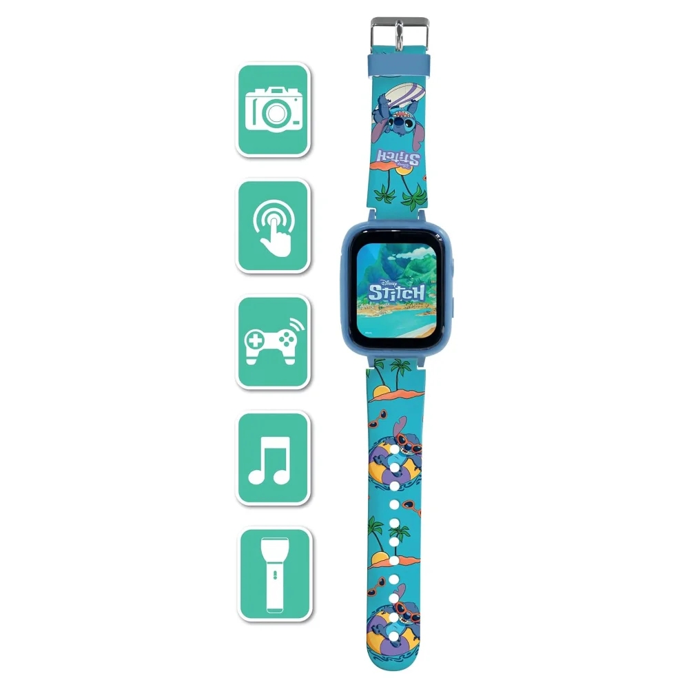 Chytré hodinky s dotykovým displejem a fotoaparátem umožní dětem zachytit všechny oblíbené okamžiky přímo na zápěstí. Nabízejí 720p kameru pro fotky a videa, MP3 přehrávač na oblíbenou hudbu, hlasový záznamník, stopky, svítilnu a spoustu dalších funkcí. Pět vestavěných her se postará o zábavu kdykoliv a kdekoliv. S 8 GB paměťovou kartou je možné uložit přes 2 000 fotek. Hodinky mají nastavitelný řemínek, jsou lehké a pohodlné na nošení.USB-C připojení umožňuje snadné nabíjení hodinek a přenos fotografií i videí do počítače. Kabel je součástí balení.Tyto chytré hodinky pro děti kombinují zábavné i praktické funkce v moderním a stylovém designu.Klíčové vlastnostiDětské hodinky s fotoaparátem a kamerou Disney StitchHD dotykový displej720p fotoaparátKamera5 vestavěných herMP3 přehrávačZabudovaný reproduktor8GB karta součástí balení (uložení až 2 000 fotografií v hodinkách)Lehké, stylové, s nastavitelným řemínkemUSB-C kabel pro nabíjení hodinek i přenos dat do PC (kabel součástí balení)Spoustu zábavných funkcí (diktafon, stopky, svítilna, kalkulačka a další)Vestavěná dobíjecí baterieVhodné pro děti od 5 letMateriál: plastPřibližná délka: 25 cm