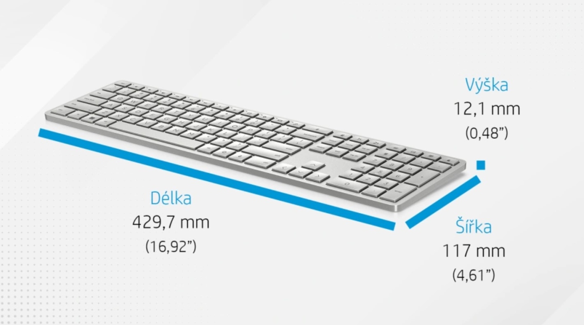 HP 970 Programovatelná bezdrátová klávesnice je prémiový HP klenot se stříbrným designem, podsvícenými klávesami a možností programování zkratek. Nabízí tiché a komfortní psaní díky vyšším, tvarovaným klávesám, připojení až ke třem zařízením (Bluetooth + USB přijímač) a dlouhou výdrž dobíjecí baterie. Ideální pro náročnou kancelářskou i domácí práci.