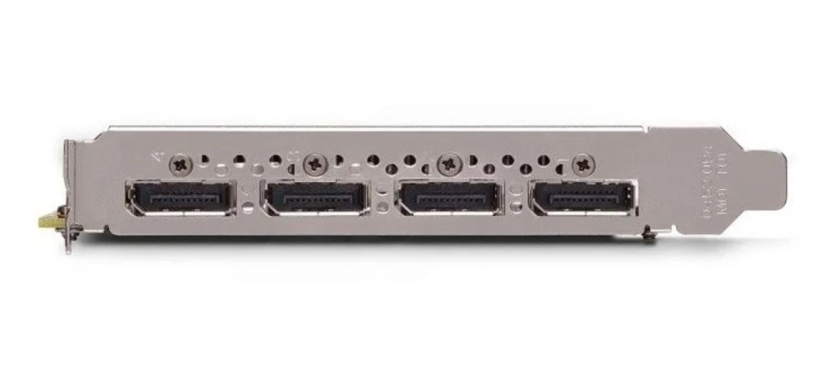 Karta je vybavena 4x DisplayPort 1.4a výstupy, které umožňují připojení více monitorů s vysokým rozlišením. To je ideální pro pracovní stanice, kde je potřeba pracovat s několika aplikacemi, výkresy, časovými osami nebo náhledy zároveň.