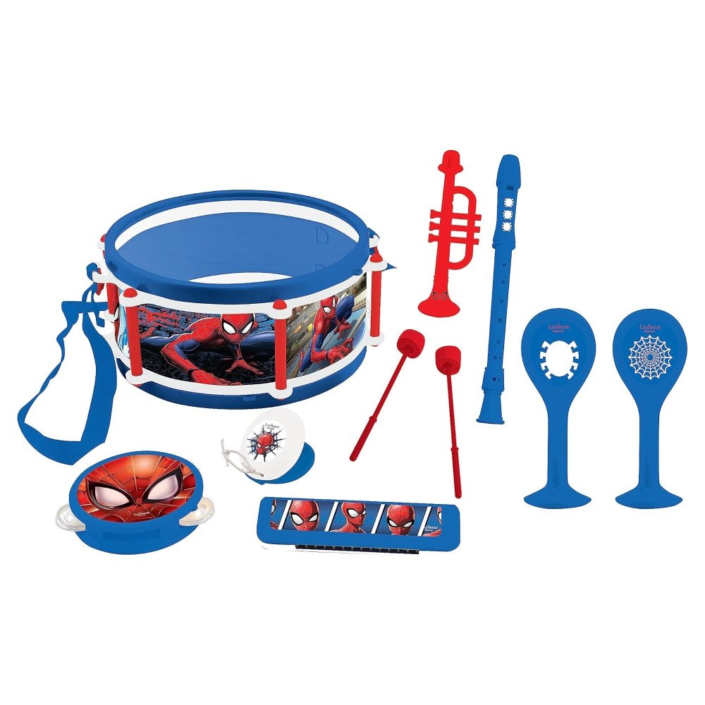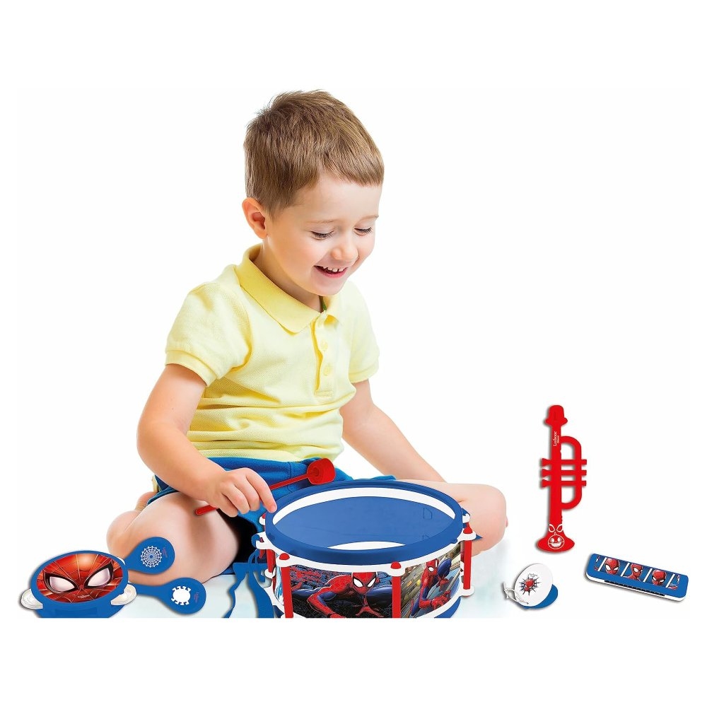 Tato sedmidílná hudební sada je skvělým začátkem pro ty nejmenší při seznamování se s rytmy a hudbou. Sada obsahuje buben, kastaněty, harmoniku, flétnu, trubku, pár maracasů (rumba koulí), malou tamburínu a dvě paličky. Všechny nástroje lze bezpečně uložit do velkého bubnu s víkem pro snadné skladování a přepravu, což oceníte při cestování nebo přenášení. Děti si užijí spoustu legrace, která zároveň přispívá k rozvoji koordinace pohybů a procvičování sluchového vnímání.Hudebně – pohybové hry, rytmická říkadla, hra na jednoduché dětské hudební nástroje v prvních letech života přispívají k rozvoji hrubé i jemné motoriky, k nácviku rovnováhy, stability a souhry obou mozkových hemisfér. Lidský hlas, pohyb, hudba, to všechno vytváří v raném dětství v dětech pocit bezpečí a přispívá k jejich vyrovnanému psychickému rozvoji.Klíčové vlastnostiTéma Spider-Man7dílná hudební sadaSeznamování se s hudbou a rytmem pro nejmenšíKombinace rytmických a dechových nástrojůÚložný prostor v bubnu s víkemRozvoj hrubé i jemné motorikyProcvičování sluchového vnímáníBuben + dvě paličkyPár maracasů (rumba koulí)KastanětyHarmonikaFlétna (dvě části)TrubkaMalá tamburína