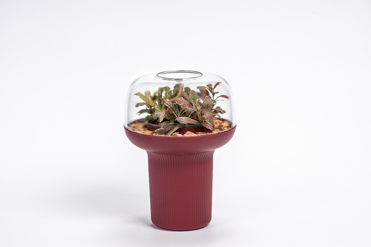 Pěstební nádoba s moderním designem, ideální pro pěstování vlhkomilných rostlin, jako jsou masožravé rostliny, orchideje, tilandsie a jiné vhodné rostliny malého vzrůstu.