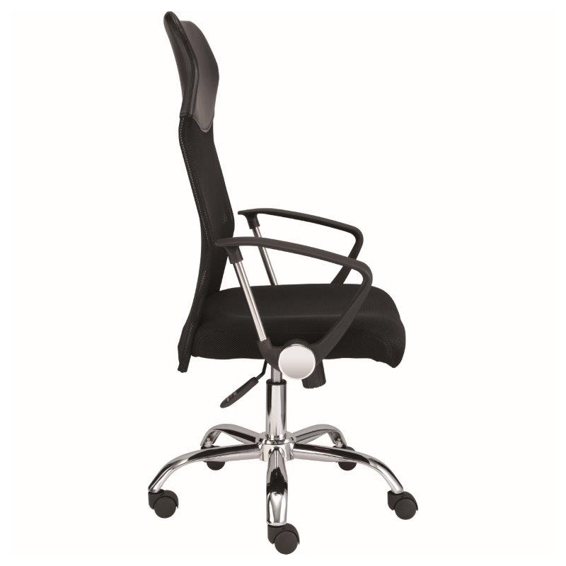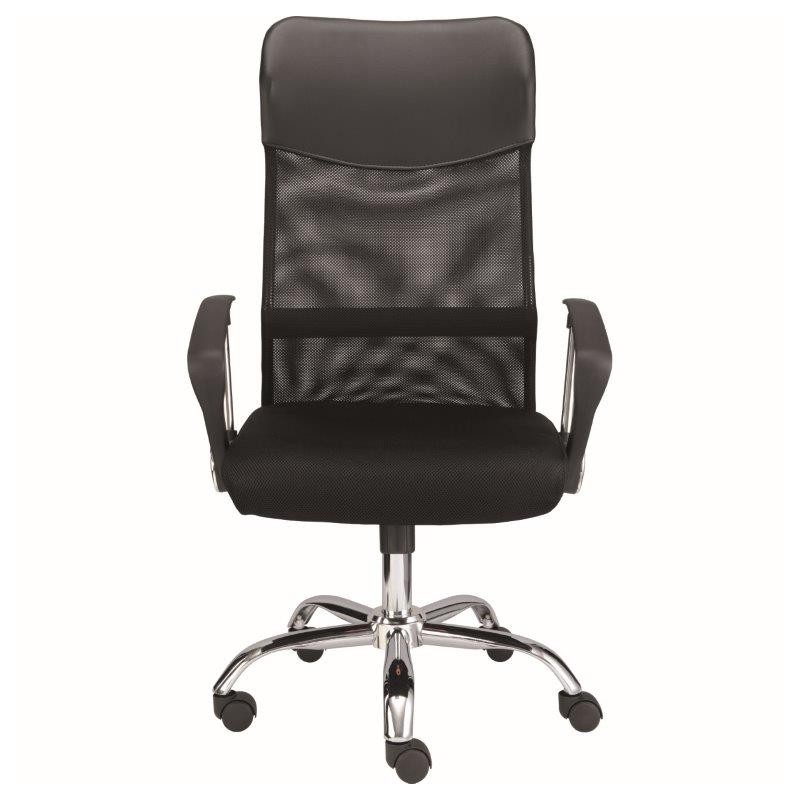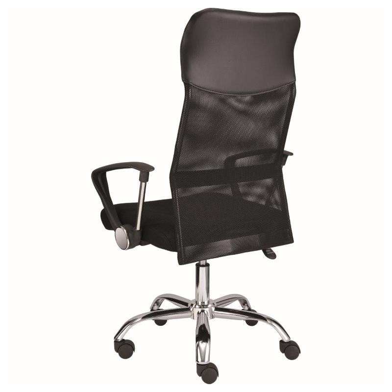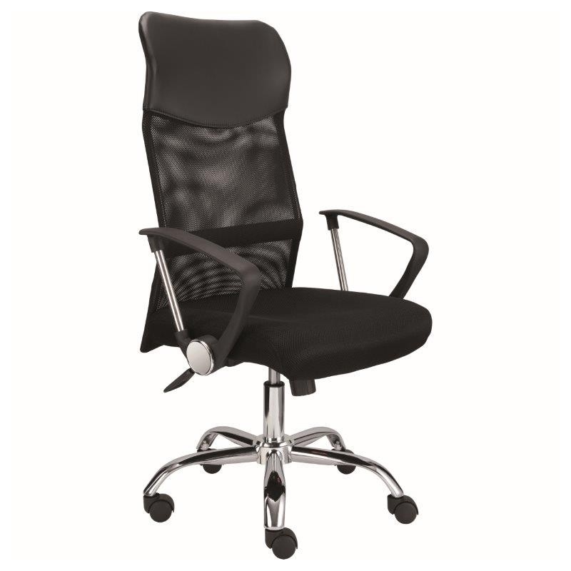 Velmi oblíbená kancelářská židle s područkami a houpacím mechanismem s aretací v základní poloze a nastavitelnou silou protiváhy. Fixní síťovaný opěrák je opatřen integrovaným podhlavníkem potaženým koženkou v antracitové barvě.