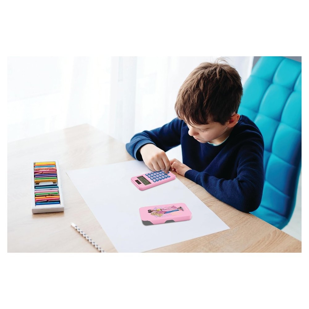 Tuto kapesní kalkulačku v jedinečném barevném provedení s oblíbenými hrdiny si vaše děti zamilují. Malá, lehká osmimístná kalkulačka obsahuje základní i pokročilé funkce, včetně procent a možnosti uložení hodnot do paměti prostřednictvím tlačítek "M+"/"M-" a "MRC". Díky solárnímu napájení je šetrná k životnímu prostředí a po chvíli nečinnosti se automaticky vypne. Barevný kryt kalkulačku ochrání a děti ji mohou nosit v batohu bez toho, aniž by se poškodila.Kalkulačka je vybavena duálním napájením – solárním a na baterii typu 1,5 V AG10 (součástí balení).Pořiďte svým dětem školní pomůcky s jejich oblíbenými hrdiny. Nejenže jsou stylové a praktické zároveň, ale děti navíc ocení možnost přinést si kousek jejich oblíbeného pohádkového světa do školy. Takové pomůcky mohou dětem zpříjemnit vyučování a podpořit pocit kamarádství při sdílení obdivu ke stejným postavičkám.Klíčové vlastnostiTéma BarbiePraktická osmimístná kalkulačka, kterou si děti mohou vzít kamkoli s sebou díky kompaktnímu designuStylová školní pomůcka v krásných barváchZákladní i pokročilé funkce (procenta, paměť) Lehká, malá a s ochranným krytemŠetrná k životnímu prostředí: solární napájení s automatickým vypnutím po chvíli nečinnostiDuální napájení: 1 x 1,5 V baterie typu AG10 (součástí balení) a solární napájeníRozměry: 11,6 x 6,3 x 1,2 cm