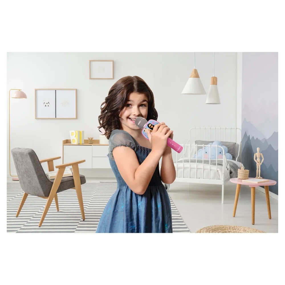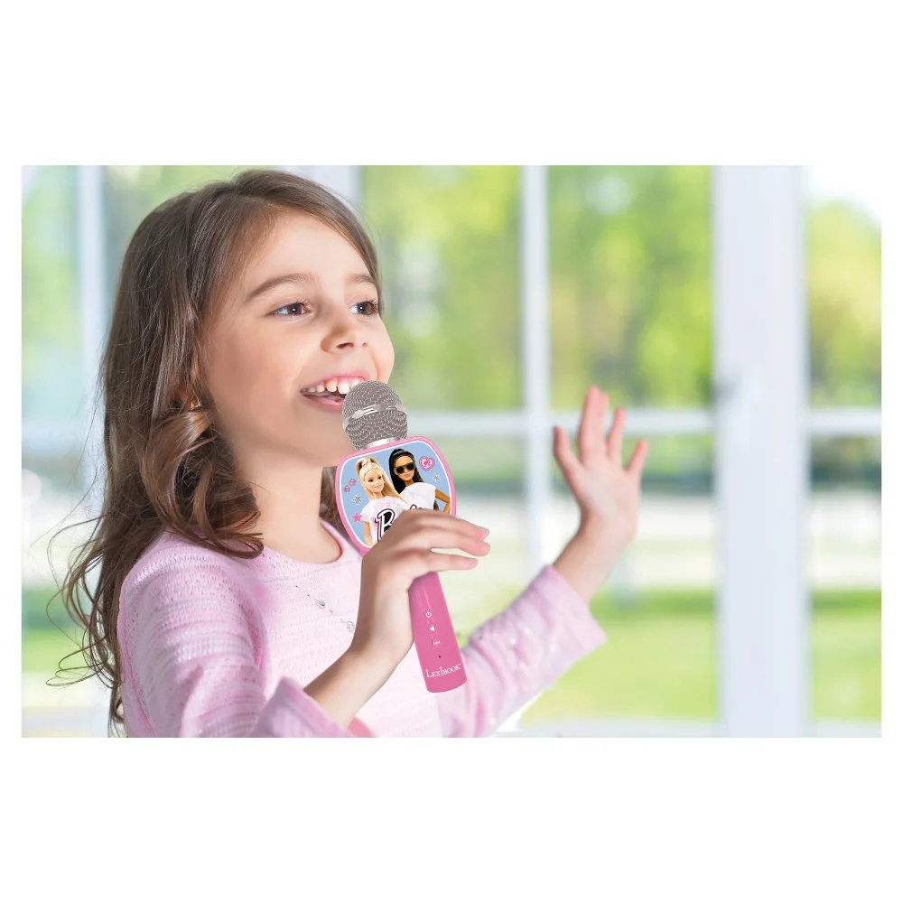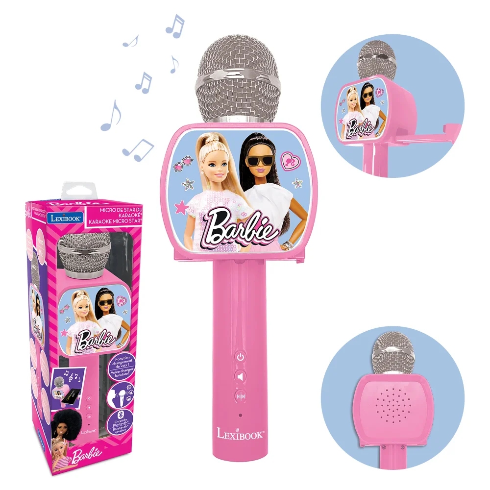 Barbie již více než 60 let baví a inspiruje celé generace! Chtějí se vaši malí fanoušci také stát součástí tohoto růžového, luxusního světa? S jejími módními oblečky, krásnými doplňky a luxusním životním stylem není překvapením, proč jsou děti touto okouzlující postavičkou a jejími přáteli fascinovány. Nechte své děti snít ve velkém a pomozte jim vyjádřit jejich kreativitu, představivost a sebevědomí po boku nejikoničtějšího vzoru moderní doby!Ohromte všechny tímto multifunkčním karaoke mikrofonem se zabudovaným reproduktorem. Díky bezdrátové technologii Bluetooth® můžete připojit jakékoliv kompatibilní zařízení a užít si neomezený výběr hudby až do vzdálenosti 10 metrů. Mikrofon je vybaven výsuvným držákem na telefon, což oceníte při čtení textu písniček z mobilního telefonu (není součástí balení). Zpestřete svoje karaoke vystoupení hlasovými efekty. Snadným stisknutím tlačítka si vyberte ze 3 různých stylů a proměňte svůj hlas – vysoký ženský hlas, hlas s ozvěnou a hluboký mužský hlas. Uživatelsky přívětivá tlačítka zabudovaná přímo v mikrofonu umožní přehrávání hudby, pozastavení, zapnutí a vypnutí, ovládání hlasitosti a volbu předchozí nebo další skladby. Výstupní výkon 3 W garantuje kvalitní zvuk. Zpívejte a tancujte s tímto revolučním karaoke mikrofonem a užijte si zábavu naplno!Dobíjecí baterii, která je součástí mikrofonu, nabijete prostřednictvím micro USB kabelu (součástí balení) nebo adaptéru typu USB (není součástí balení). Doba nabíjení je cca 4 hodiny a provoz mikrofonu přibližně 3 hodiny.Pokud vaši nejmenší rádi tancují a zpívají, je tento karaoke mikrofon skvělou volbou na hodiny zábavy. Rozvíjí dětskou kreativitu a je skvělým doplňkem na narozeninovou párty nebo setkání s kamarády. Hudební aktivity navíc stimulují kognitivní funkce mozku a přinášejí spoustu výhod, jako vývoj motorického plánování, koordinace a rozvoj smyslů. Podpořte záliby svých dětí a probuďte jejich skrytý talent!Klíčové vlastnostiTéma BarbieKaraoke trendy mikrofon s reproduktoremPerfektní pro všechny, kteří rádi tancují a zpívajíSkvělý doplněk na dětské párty nebo setkání s kamarádyHodiny kreativní zábavyBezdrátová technologie Bluetooth® s připojením až do 10 metrůVýsuvný držák na telefon pro čtení textu písniček3 hlasové efekty – hlas s ozvěnou, vysoký ženský hlas a hluboký mužský hlasUživatelsky přívětivá tlačítkaVýstupní výkon 3 WDobíjecí baterie typu 5,0 V 500mAh (součástí balení), nabíjení prostřednictvím micro USB kabelu (součástí balení) nebo adaptéru typu USB (není součástí balení)Doba nabíjení: 4 hodiny (po dokončení LED kontrolka zhasne)Doba provozu: 3 hodiny