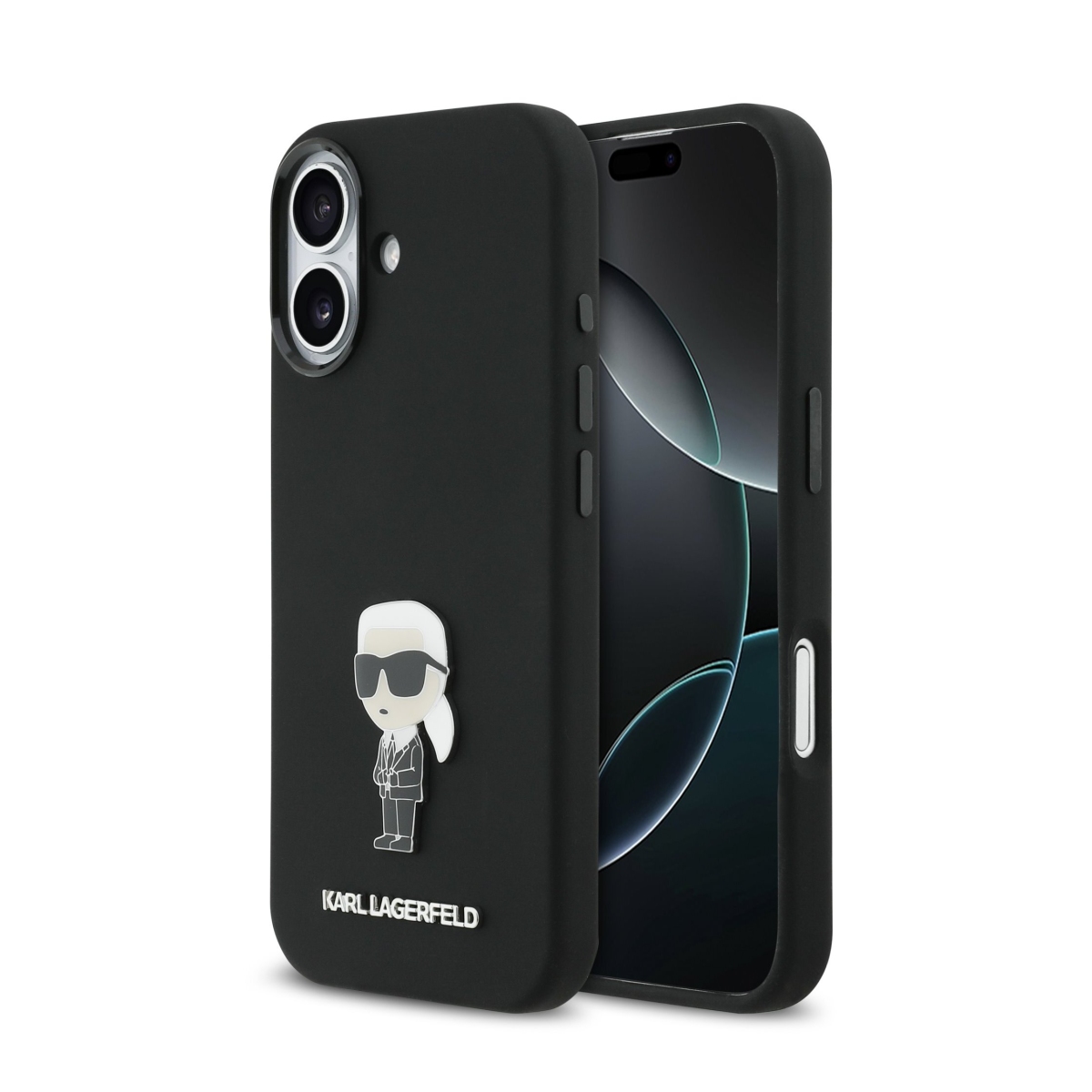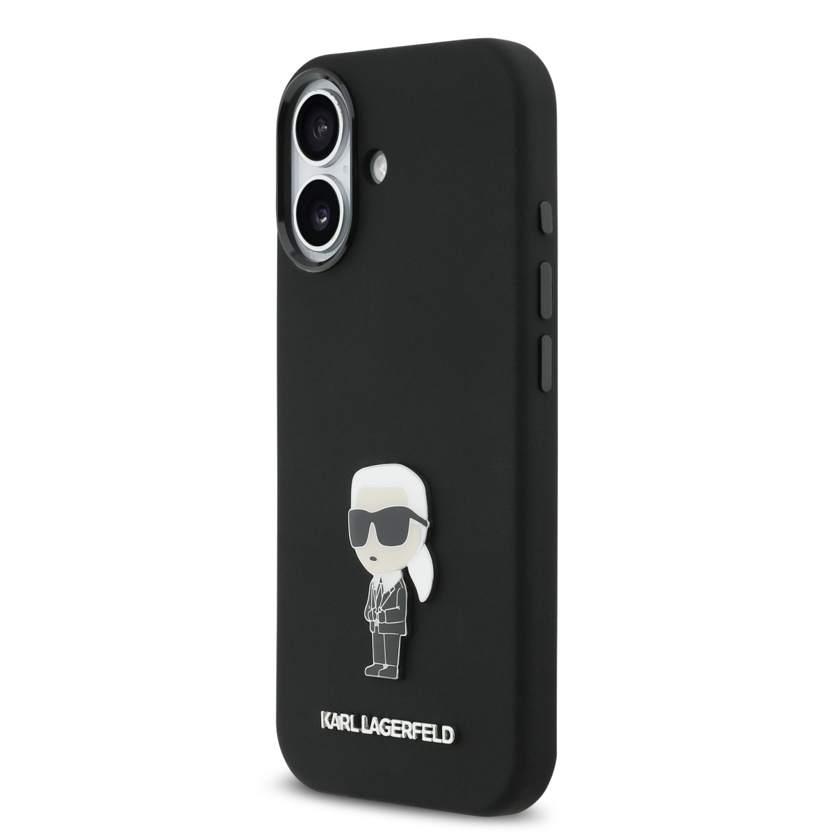 Karl Lagerfeld Liquid Silicone Metal Ikonik zadní kryt pro iPhone 17 – černá