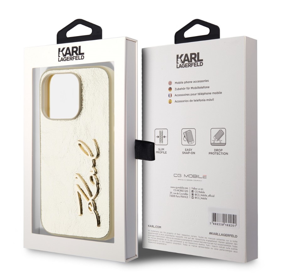 Karl Lagerfeld Wrinkled PU Signature Logo Zadní Kryt pro iPhone 15 Pro Gold