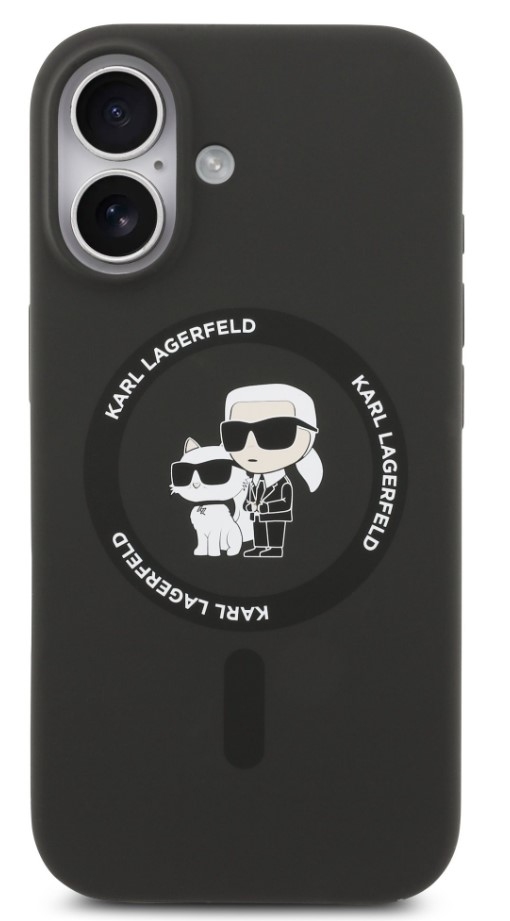 Stylový kryt Karl Lagerfeld (KLHMP17SSCMKCRHK) z liquid silikonu s výstelkou z mikrovlákna chrání telefon před poškozením a skvěle padne do ruky. Ikonické vyobrazení Karla a Choupette doplňuje elegantní design, zatímco MagSafe podpora zajišťuje pohodlné bezdrátové nabíjení.