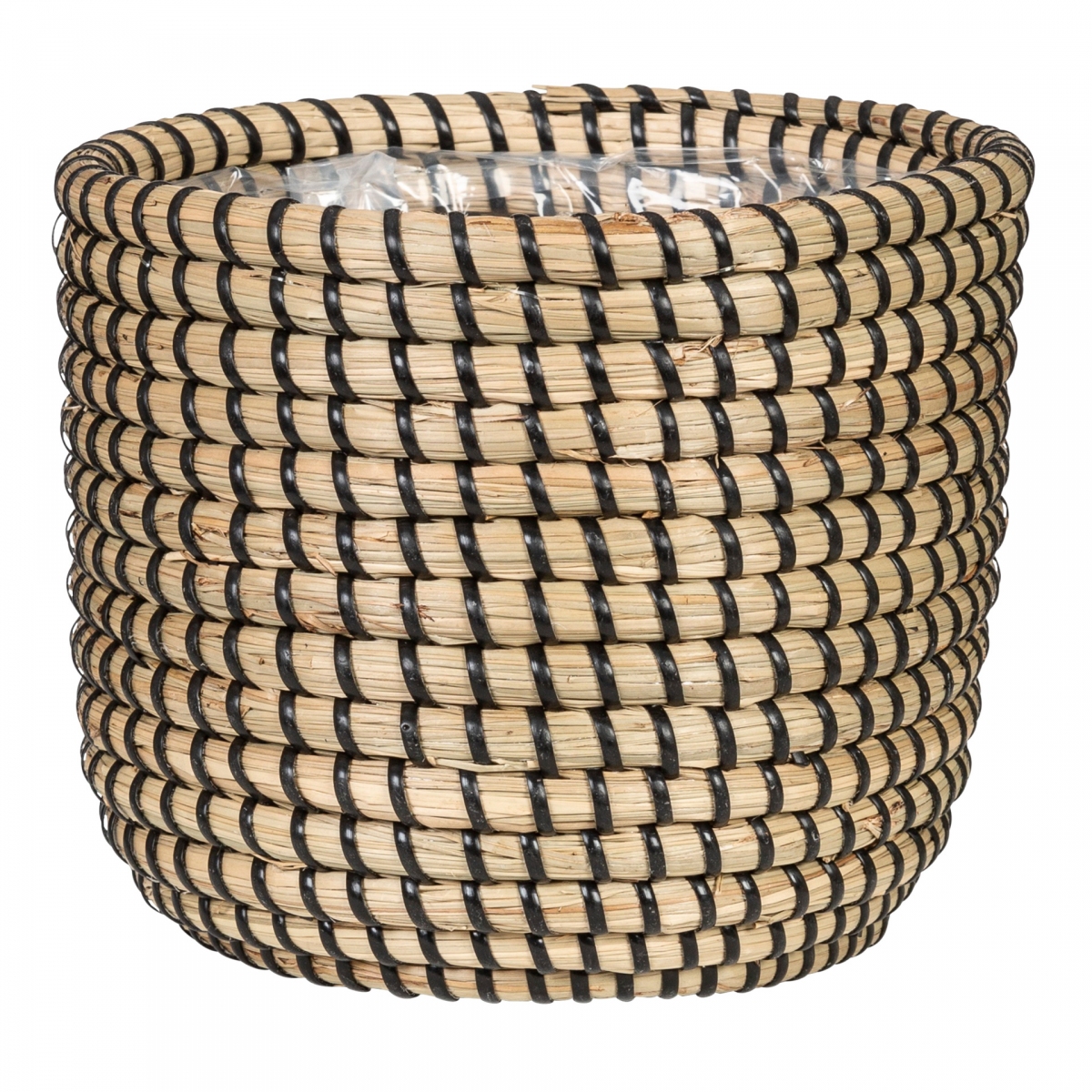 Klasický proutěný květináč z mořské trávy, potažený pevnou voděodolnou fólií, do vašeho obývacího prostoru.