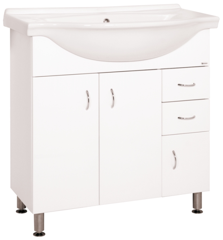 Skříňka do koupelny s keramickým umyvadlem. Lakované boky i čelní plochy. Skříňka je dodávaná smontovaná, zákazník montuje pouze nohy a úchytky. Doporučujeme kombinovat se zrcadlem PROZRKC80IP či PROZRCK60IP se skříňkou PROH20.