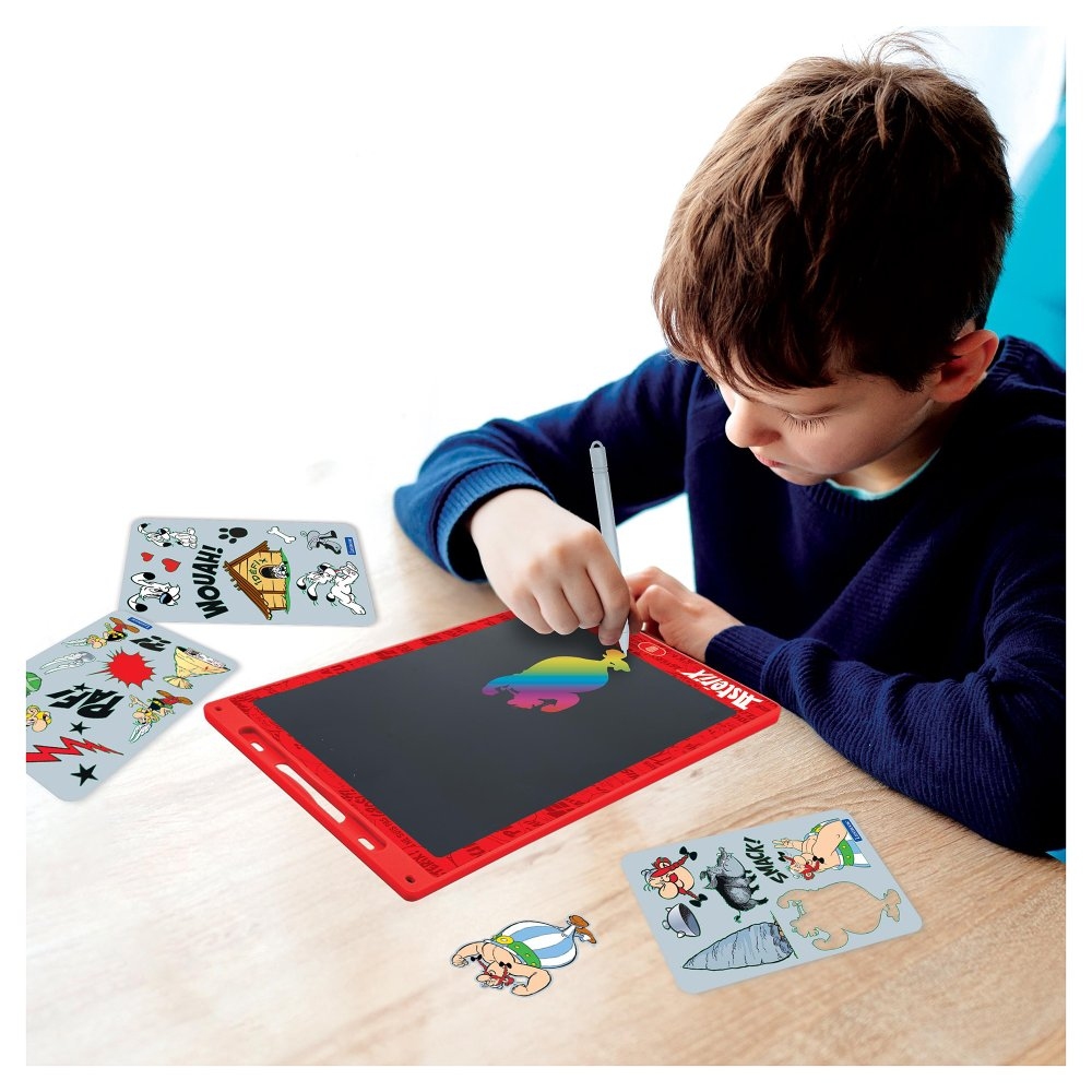 O produktuPodpořte kreativitu vašich dětí díky vícebarevnému kreslicímu tabletu s šablonami a elektronickým inkoustem! Ultratenký, lehký tablet z odolného materiálu je ideální pro kreslení, psaní a učení prostřednictvím přiloženého stylusu, a to kdekoli – v autě, restauraci nebo na návštěvě u přátel. Díky citlivému LCD displeji mohou děti snadno upravovat tloušťku čar. Tablet je vybaven tlačítkem pro mazání obsahu a také zámkem proti nechtěnému smazání, takže umělecké dílo nebude ztraceno. S velkou 11palcovou obrazovkou a šablonami pro učení kreslení a psaní je zábava zaručena.Díky úložnému prostoru pro stylus a dodaným bateriím s ultra nízkou spotřebou energie je tablet vždy připraven k použití. Ušetřete papír a podpořte kreativitu vašich dětí.Jednoduchý, ale šikovný nástroj, který je skvělý pro povzbuzení nevázané kreativity u dětí a podporu rozvoje jemné motoriky. Kombinuje staromódní zábavu s moderním provedením a nepochybně si získá oblibu u malých umělců.Klíčové vlastnostiKreslicí tablet s elektronickým inkoustemVelký 11" displejVícebarevné kreslení a psaní, přinášející hodiny zábavyŠablony různých tvarů a vzorů pro snadnější učeníStylus s úložným prostorem v horní části tabletuSkvělý nástroj podporující dětskou tvořivost a představivostLCD citlivý displej pro přizpůsobení tloušťky čarTlačítko pro vymazání obsahuTlačítko zámku proti nechtěnému mazáníUltratenký, lehký a z odolného materiáluIdeální na cesty, do restaurace nebo na návštěvu u přátelPodporující rozvoj jemné motorikyŽádná rozlitá voda nebo barevné skvrny na zdechBaterie s velmi nízkou spotřebou součástí balení (1x 3 V CR2025)Přibližné rozměry: 18,4 x 0,6 x 26 cmO hrdinech Všechny produkty s licencí AsterixDobrodružství Galů nikdy nekončí! Malý, ale odvážný Asterix s okřídlenou přilbou a Obelix s pruhovanými kalhotami – kdo by je neznal. Jejich vtipné příběhy baví děti i dospělé už celé generace. Teď mohou i vaše děti vstoupit do tohoto světa plného odvahy, humoru a legendárních hrdinů. Objevte naši kolekci hraček s motivem Asterixe, Obelixe a jejich přátel.O výrobci Francouzský výrobce moderní elektroniky pro děti S více než čtyřicetiletou historií se Lexibook etabloval jako evropský lídr v oblasti elektronických hraček a vzdělávacích produktů pro děti. Drží se trendů a moderních technologií, aby děti nejen bavil, ale i podporoval jejich učení a kreativitu. Hračky zdobí nejznámější postavy dětských pohádek a příběhů, díky kterým si Lexibook získal oblibu dětí po celém světě.