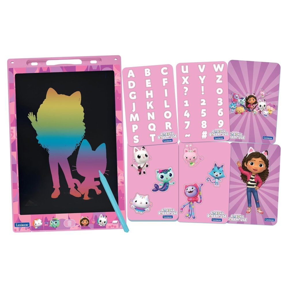 Podpořte kreativitu vašich dětí díky vícebarevnému kreslicímu tabletu s šablonami a elektronickým inkoustem! Ultratenký, lehký tablet z odolného materiálu je ideální pro kreslení, psaní a učení prostřednictvím přiloženého stylusu, a to kdekoli – v autě, restauraci nebo na návštěvě u přátel. Díky citlivému LCD displeji mohou děti snadno upravovat tloušťku čar. Tablet je vybaven tlačítkem pro mazání obsahu a také zámkem proti nechtěnému smazání, takže umělecké dílo nebude ztraceno. S velkou 11palcovou obrazovkou a šablonami pro učení kreslení a psaní je zábava zaručena.Díky úložnému prostoru pro stylus a dodaným bateriím s ultra nízkou spotřebou energie je tablet vždy připraven k použití. Ušetřete papír a podpořte kreativitu vašich dětí.Jednoduchý, ale šikovný nástroj, který je skvělý pro povzbuzení nevázané kreativity u dětí a podporu rozvoje jemné motoriky. Kombinuje staromódní zábavu s moderním provedením a nepochybně si získá oblibu u malých umělců.Klíčové vlastnostiKreslicí tablet s elektronickým inkoustem Gábinin kouzelný domekVelký 11" displejVícebarevné kreslení a psaní, přinášející hodiny zábavyŠablony různých tvarů a vzorů pro snadnější učeníStylus s úložným prostorem v horní části tabletuSkvělý nástroj podporující dětskou tvořivost a představivostLCD citlivý displej pro přizpůsobení tloušťky čarTlačítko pro vymazání obsahuTlačítko zámku proti nechtěnému mazáníUltratenký, lehký a z odolného materiáluIdeální na cesty, do restaurace nebo na návštěvu u přátelPodporující rozvoj jemné motorikyŽádná rozlitá voda nebo barevné skvrny na zdechBaterie s velmi nízkou spotřebou součástí balení (1x 3 V CR2025)Přibližné rozměry: 18,4 x 0,6 x 26 cm
