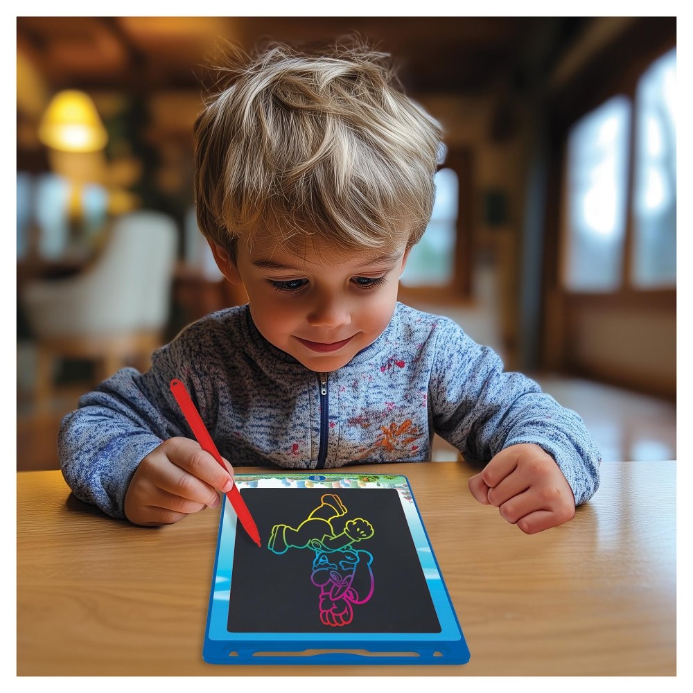 Objevte kouzlo dětské kreativity díky ultralehkému kreslicímu tabletu s elektronickým inkoustem a šablonami! Kreslení a psaní bez hranic na velkém displeji. Ideální zábava na cesty bez papírového odpadu.