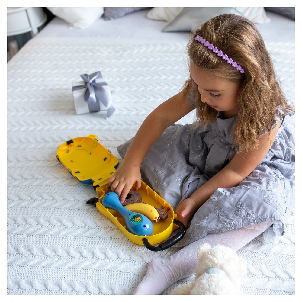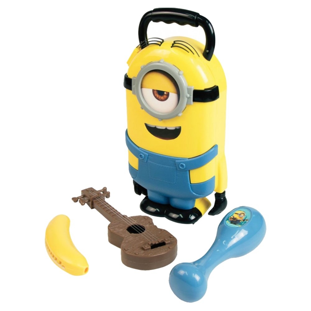 Unikátní design pro milovníky Mimoňů! Uložte si veškeré příslušenství do kufru Stuart: Jedna rumba koule pro nejistou hudbu Jedna harmonika ve tvaru banánu Jedno mini ukulele pro přehrávání oblíbených melodií Připravte se na úžasná hudební dobrodružství s Mimoni! Věk: od 3 let Záruka: 2 roky Navrženo a vyvinuto v Evropě - vyrobeno v Číně
