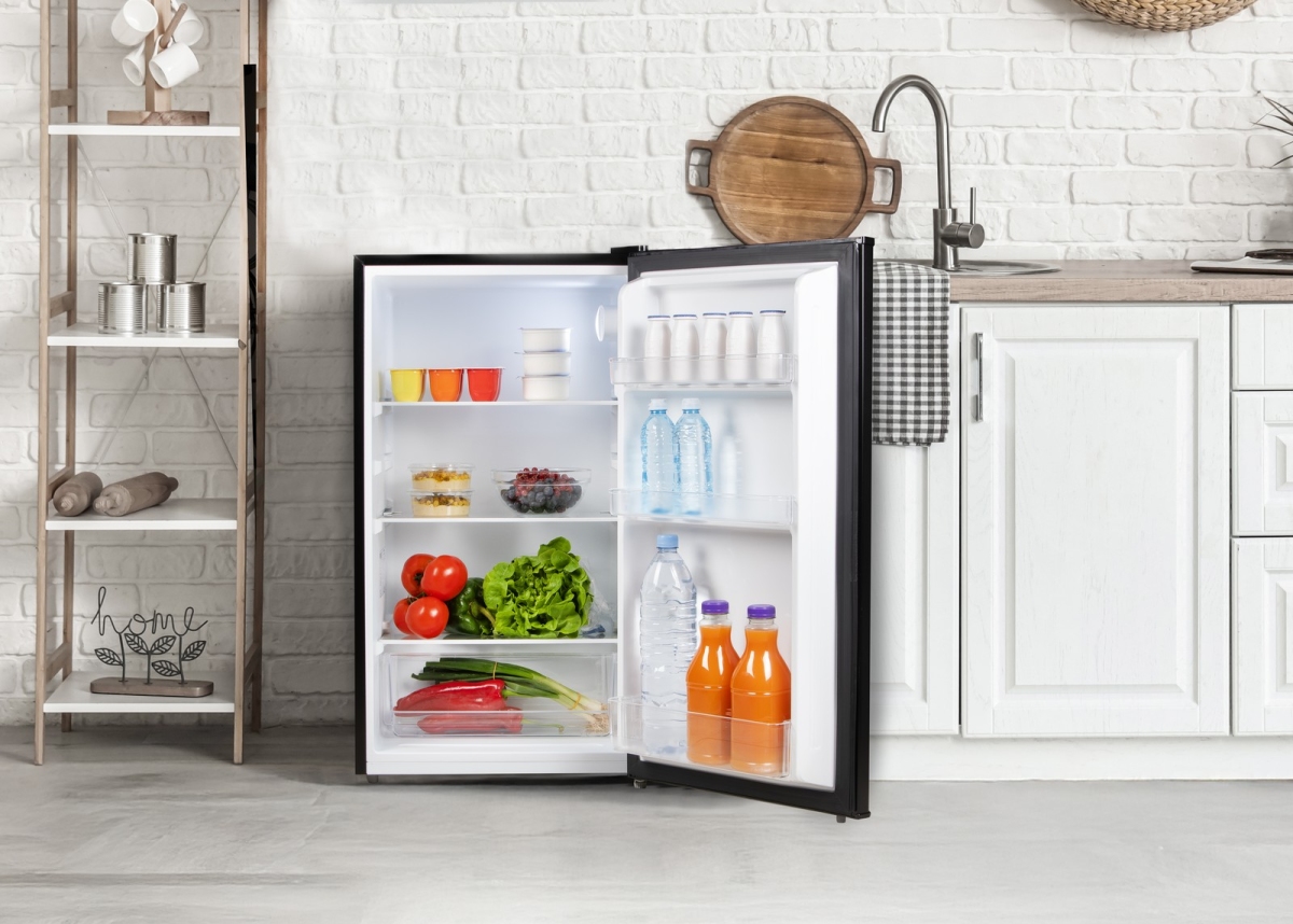 Volně stojící jednodvéřová monoklimatická lednice bez mrazáku o objemu 94 litrů s digitálním nastavením vnitřní teploty.