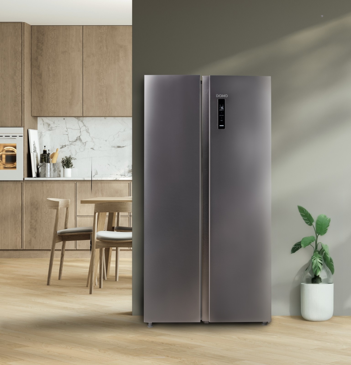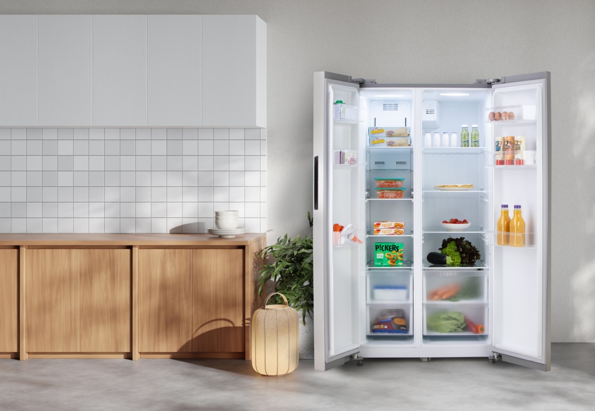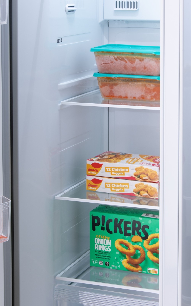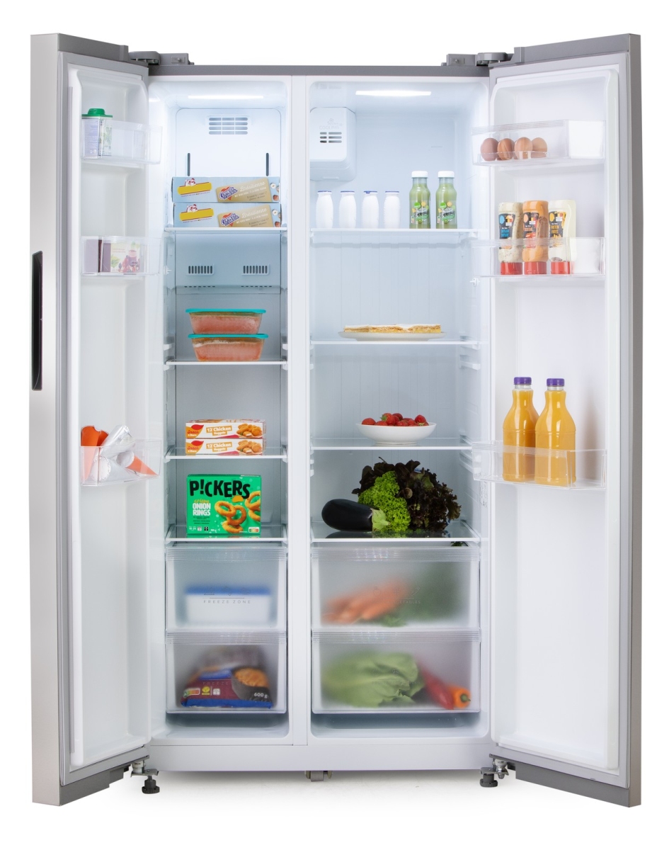 Chladnička s mrazničkou DOMO DO99506M nabízí velkorysý úložný prostor o objemu 555 litrů (349 l chladicí část, 206 l mrazicí část).