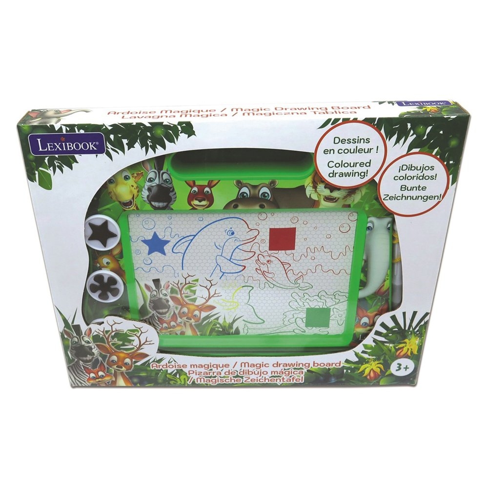 Skvělý design se zvířaty: žirafa, zebra, klokan, hroch, tygr, slon a liška! Vícebarevná kresba pro hodiny zábavy s kreslením. Kreslete nebo pište pomocí přiloženého pera a razítek a jednoduše pomocí posuvné gumy začněte znovu! V balení 1 magnetické pero. 3 magnetická razítka pro přidání vzorů do vašich kreseb: hvězda, květina, čtverec. Pohodlná rukojeť pro snadné držení! Pro děti od 3 let. Záruka: 2 roky Navrženo a vyvinuto v Evropě - vyrobeno v Číně