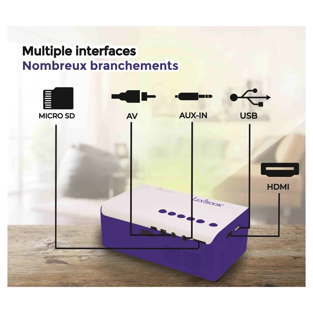 Malé a kompaktní rozměry (rozměry výrobku: 12,5 x 8,5 x 5 cm), abyste si mohli vychutnat domácí kino doma nebo na cestách! Připojení HDMI / USB / AV / karta micro SD (až 32 GB) pro snadné promítání snímků z různých médií. Napájení: síťový adaptér (součástí dodávky) Součástí balení je dálkový ovladač, síťový adaptér, AV (audio video) kabel a projektor. Vysoce kvalitní projekce 4:3 nebo 16:9 s nativním rozlišením 320 x 240px a podporou formátů HD až do 1080P. Poslouchejte filmy se sluchátky nebo reproduktorem přes port Aux-in nebo pomocí vestavěného 1W reproduktoru Hi-Fi a vychutnejte si pohlcující zvuk. Připojte Nintendo Switch nebo jinou konzoli a hrajte na velké obrazovce pomocí portu HDMI! Vaše videa lze promítat na plochu širokou až 1,4 m a do projekční vzdálenosti až 2 metry. Je ideální pro děti, které chrání před obrazovkami chytrých telefonů nebo tabletů s plynulejší projekcí na větší vzdálenost.