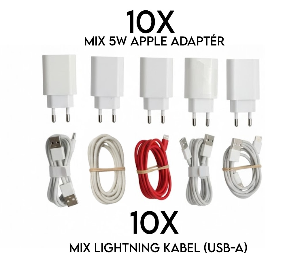 - Balení: 10× Apple adaptér + 10× Lightning kabel