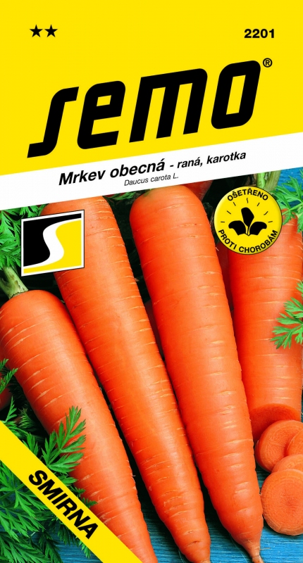 SMIRNA – raná mrkev typu Nantes. Kořeny jsou válcovité, tupě ukončené s velmi dobrým vybarvením. Odrůda je vhodná pro mechanizovanou sklizeň. Je ji možno skladovat po celou zimu.