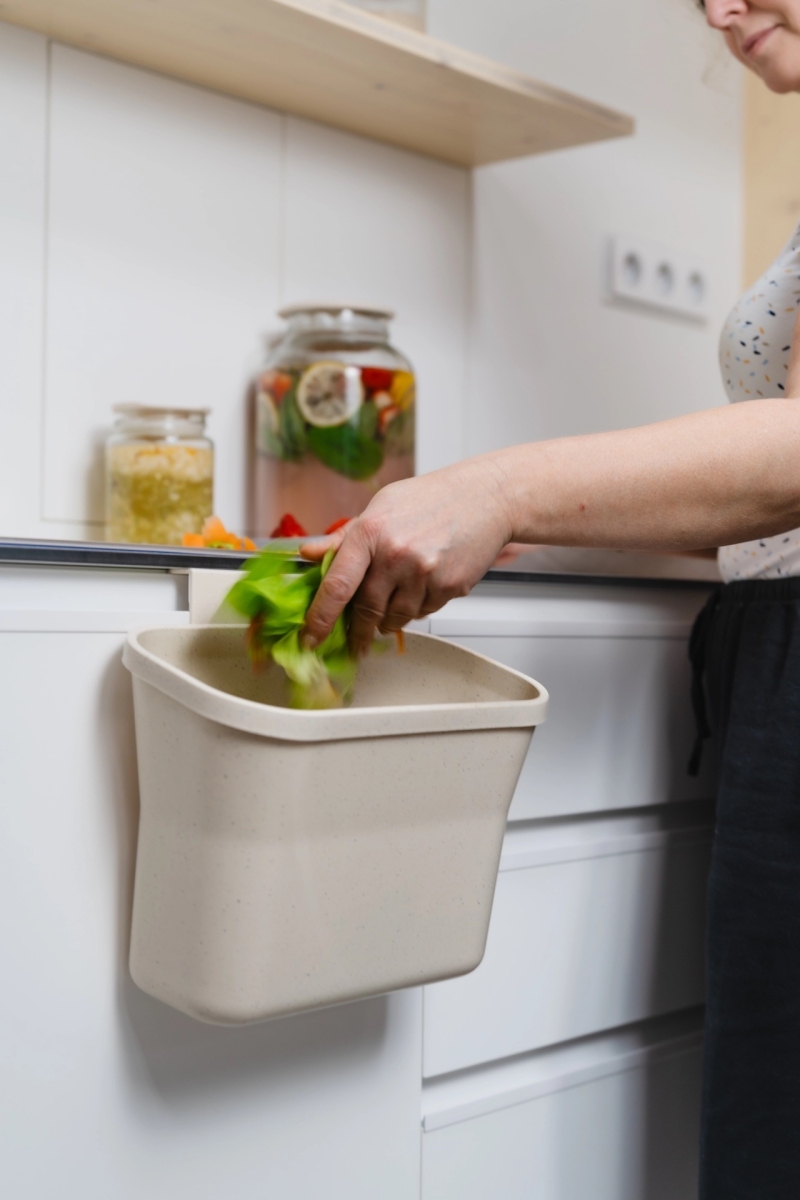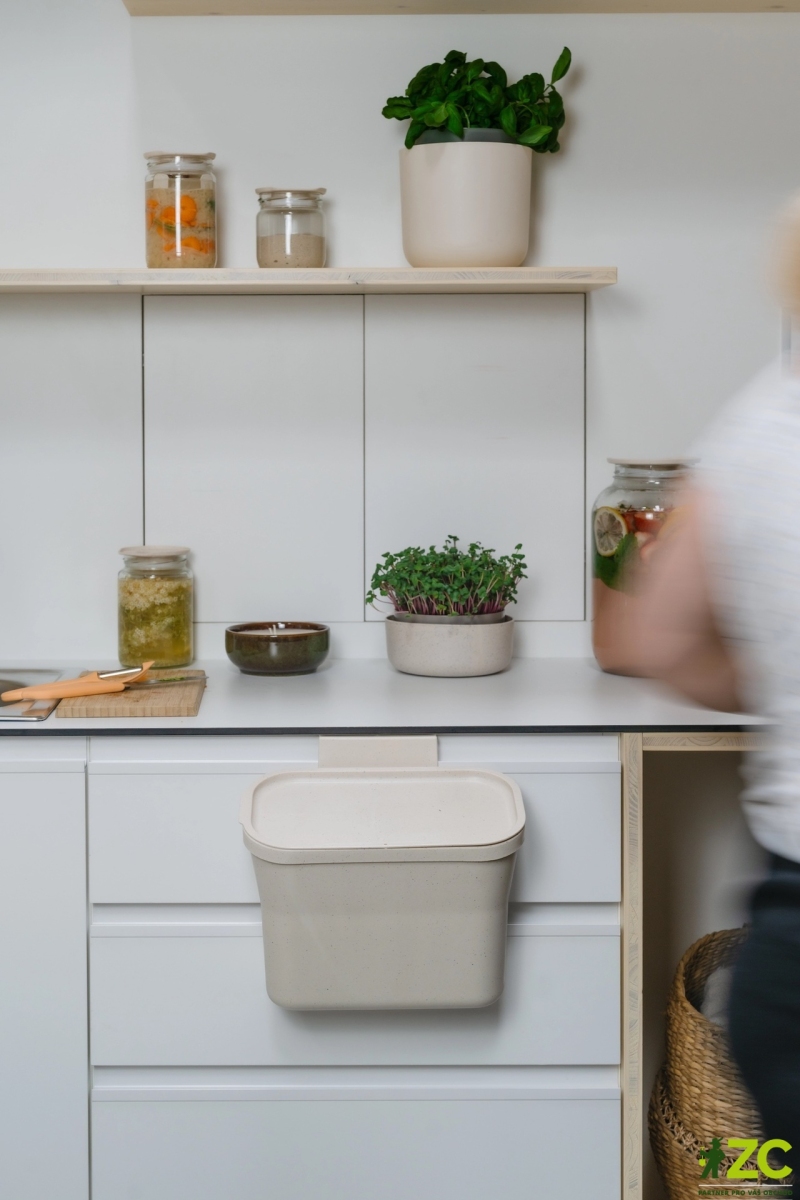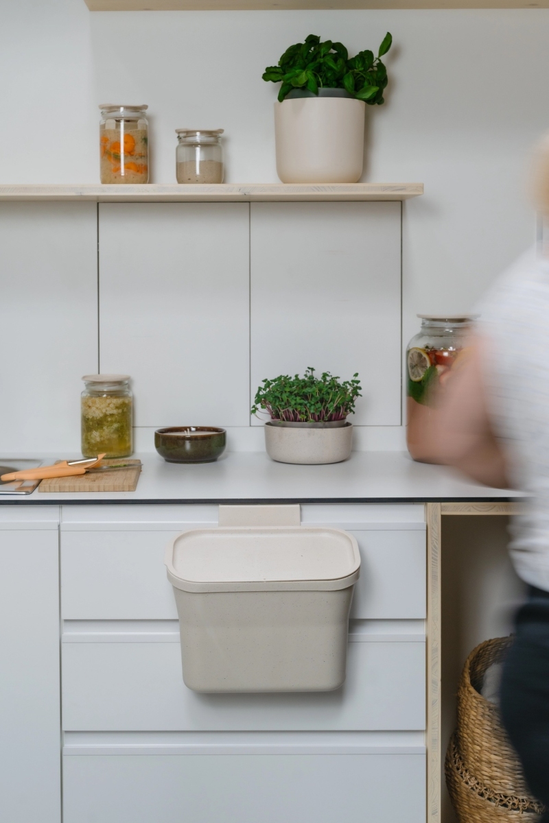 Malý, ale praktický pomocník do každé kuchyně. Nádobu zavěsíte na vnější i vnitřní stranu dvířek skříňky. Při vaření tak máte vždy po ruce místo na bioodpad. Šetří místo, udržuje pořádek a zpříjemní každodenní vaření.