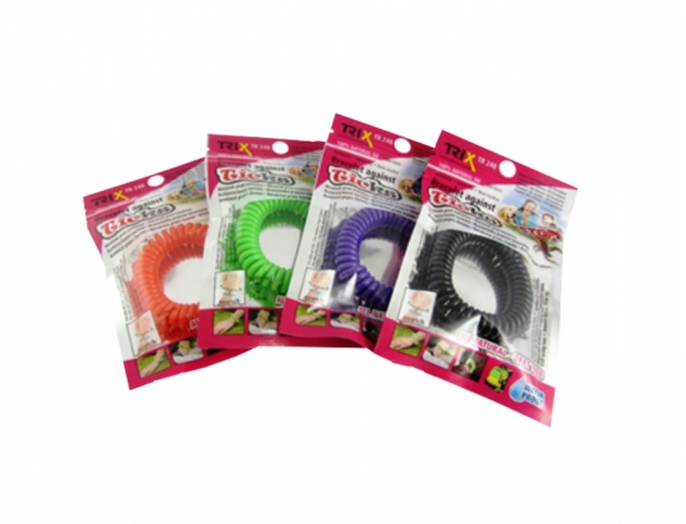 Náramek je vysoce a dlouhodobě účinný ochranný repelentní prostředek na odpuzování komárů. Má svěží vůni Citronely (olejový extrakt) a obsahuje složky, které odpuzují veškerý létající hmyz. Náramek z barevného silikonu je strečový, vysoce odolný a voděodolný. Doba působení až 350 hodin. Složení: 85 % silikon, 15 % citronelový olej. Není vhodný pro děti do 3 let.