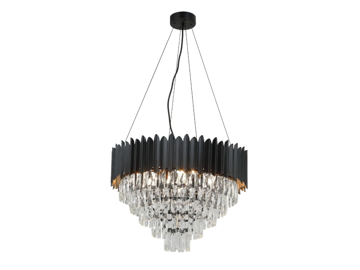 Toto výjimečné svítidlo spojuje moderní styl s precizním řemeslným zpracováním. Tělo svítidla je vyrobeno z kvalitního kovu v elegantním černém odstínu a jeho povrch je bohatě zdoben jemně broušenými křišťály, které nádherně lámou světlo a vytvářejí jedinečný světelný efekt.