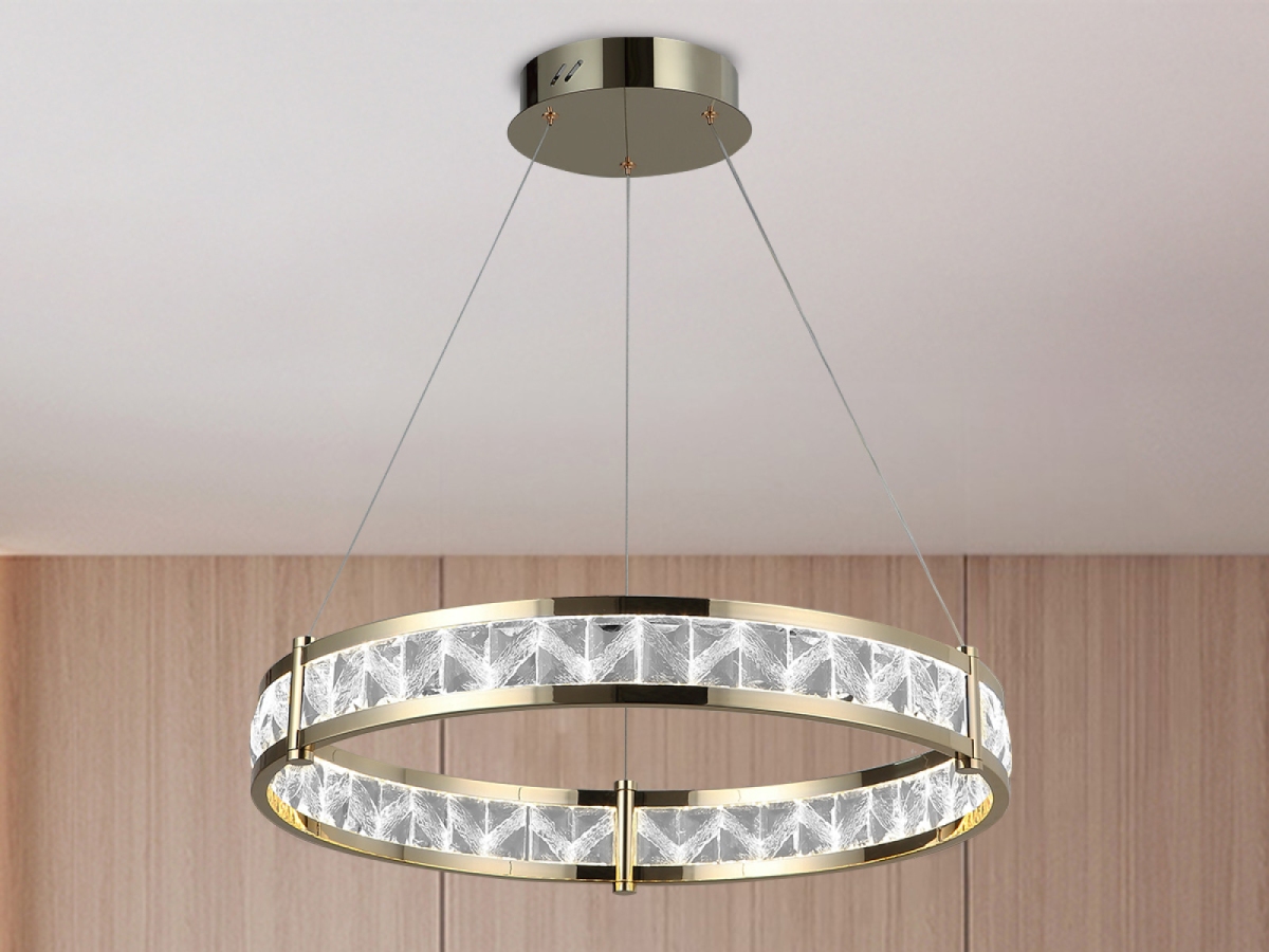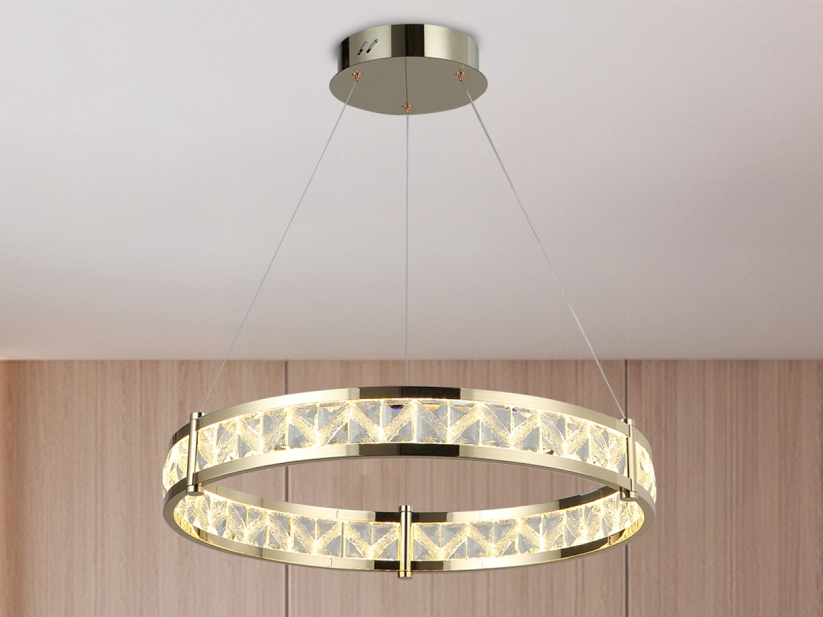 Prémiové materiály – kombinace lesklé kovové konstrukce a broušených křišťálů vytváří luxusní a sofistikovaný vzhled.