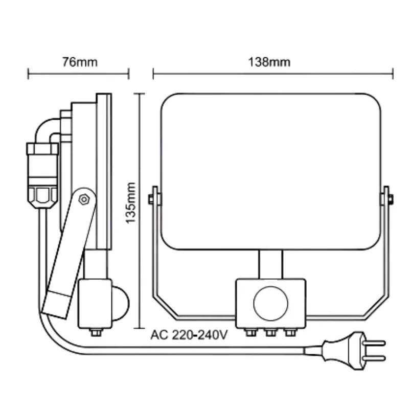 LED reflektor značky NEDES, disponuje na zadní straně konektorem, pro snadné a rychlé zapojení kabelů. Úsporné LED poskytují jasné a dlouhotrvající osvětlení s minimální spotřebou energie. Použitý materiál je odolný vůči povětrnostním podmínkám a vodě. Vybaven je jednoduchým montážním systémem, což umožňuje bezproblémovou instalaci na stěny, ploty nebo jiné povrchy. Je ideálním řešením pro venkovní osvětlení domu, zahrady, chodníků, parkovišť, hřišť a jiných veřejných prostranství. Disponuje senzorem, který detekuje pohyb v určeném dosahu a spouští světlo. Tento prvek zajišťuje automatické zapínání a vypínání svítidla, což přispívá k úspoře energie a zvyšuje bezpečnost. Naše svítidla a ostatní výrobky jsou oblíbené po celém světě. TECHNICKÉ PARAMETRY spotřeba 20W světelný tok 1900Lm krytí IP44 chromatičnost (barva světla) 4000K - neutrální bílá úhel světla 120° rozměr (mm) 138 x 135 x 76 senzor PIR napětí AC220 - 240V životnost 25 000h spínací cyklus 20 000 x hmotnost netto (g) 200 stmívatelná ne materiál aluminium - matný antikorozní nástřik typ difuzoru PC balení 1/30 -cena produktu zahrnuje recyklační poplatek v hodnotě 2Kč bez DPH (2,40Kč s DPH)