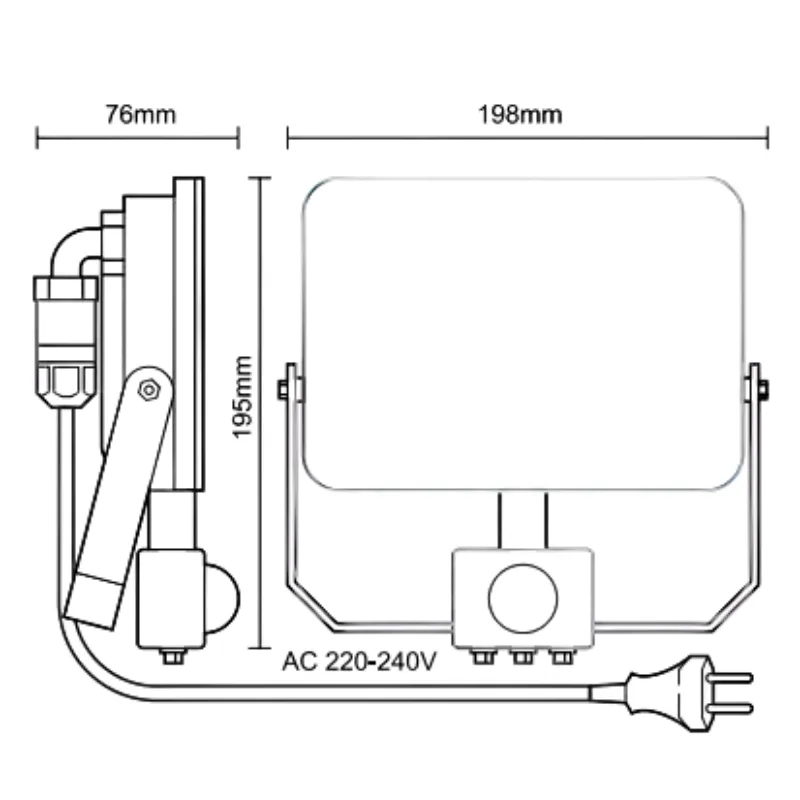 LED reflektor značky NEDES, disponuje na zadní straně konektorem, pro snadné a rychlé zapojení kabelů. Úsporné LED poskytují jasné a dlouhotrvající osvětlení s minimální spotřebou energie. Použitý materiál je odolný vůči povětrnostním podmínkám a vodě. Vybaven je jednoduchým montážním systémem, což umožňuje bezproblémovou instalaci na stěny, ploty nebo jiné povrchy. Je ideálním řešením pro venkovní osvětlení domu, zahrady, chodníků, parkovišť, hřišť a jiných veřejných prostranství. Disponuje senzorem, který detekuje pohyb v určeném dosahu a spouští světlo. Tento prvek zajišťuje automatické zapínání a vypínání svítidla, což přispívá k úspoře energie a zvyšuje bezpečnost. Naše svítidla a ostatní výrobky jsou oblíbené po celém světě. TECHNICKÉ PARAMETRY   spotřeba 50W světelný tok 4750Lm krytí IP44 chromatičnost (barva světla) 4000K - neutrální bílá úhel světla 120° rozměr (mm) 198 x 195 x 76 senzor PIR napětí AC220 - 240V životnost 25 000h spínací cyklus 20 000 x hmotnost netto (g) 406 stmívatelná ne materiál aluminium - matný antikorozní nástřik typ difuzoru PC balení 1/10 -cena produktu zahrnuje recyklační poplatek v hodnotě 2Kč bez DPH (2,40Kč s DPH)