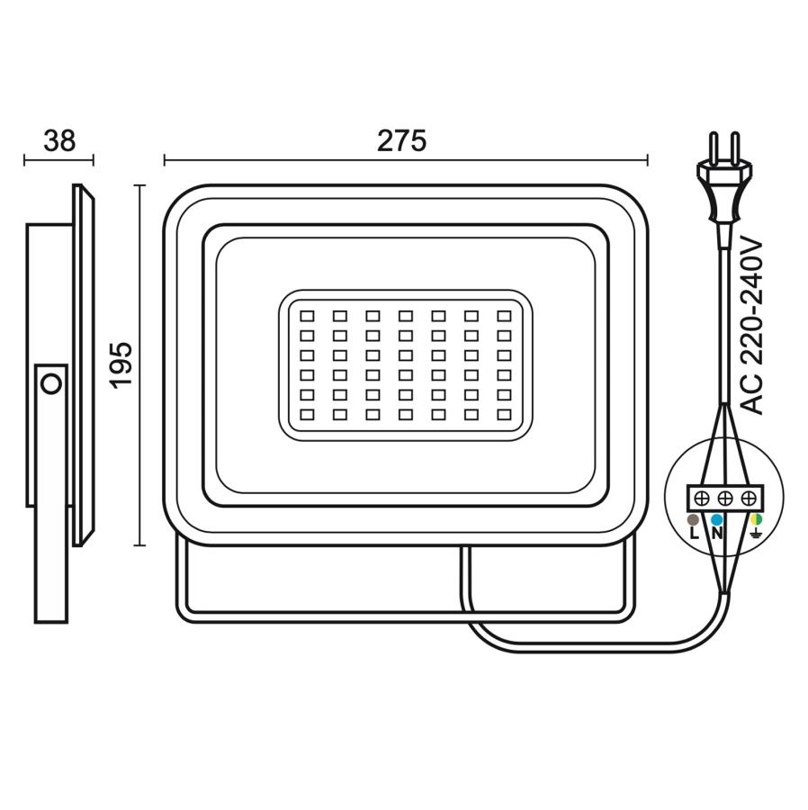 LED reflektor značky NEDES v černé barvě disponuje držákem a vysoce kvalitním LED čipem. Je vhodný do interiéru například do garáže, na stavby a exteriéru pro osvětlení zahrad, domů nebo dvorů. Je vyroben z kvalitních a odolných materiálů. Svítí jasnou linií v neutrální bílé barvě světla. Díky své nízké spotřebě energie jsou naše svítidla oblíbená po celém světě. TECHNICKÉ PARAMETRY   spotřeba 100W světelný tok 4000Lm krytí IP65 chromatičnost (barva světla) 8000K - neutrální bílá úhel světla 120° rozměr (mm) 195 x 38 x 275 senzor - napětí AC220 - 240V životnost 25 000h spínací cyklus 20 000 x hmotnost netto (g) 908 stmívatelná ne materiál aluminium - matný antikorozní nástřik typ difuzoru sklo balení 1/10 LED jsou nevyměnitelné   -cena produktu zahrnuje recyklační poplatek v hodnotě 2Kč bez DPH (2,40Kč s DPH)