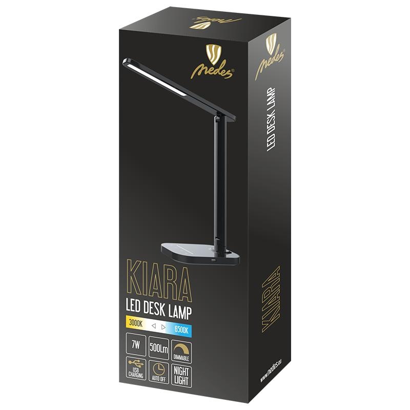 NEDES - LED lampa KIARA 7W stmívatelná s USB + noční světlo + časovač - DL4304/B