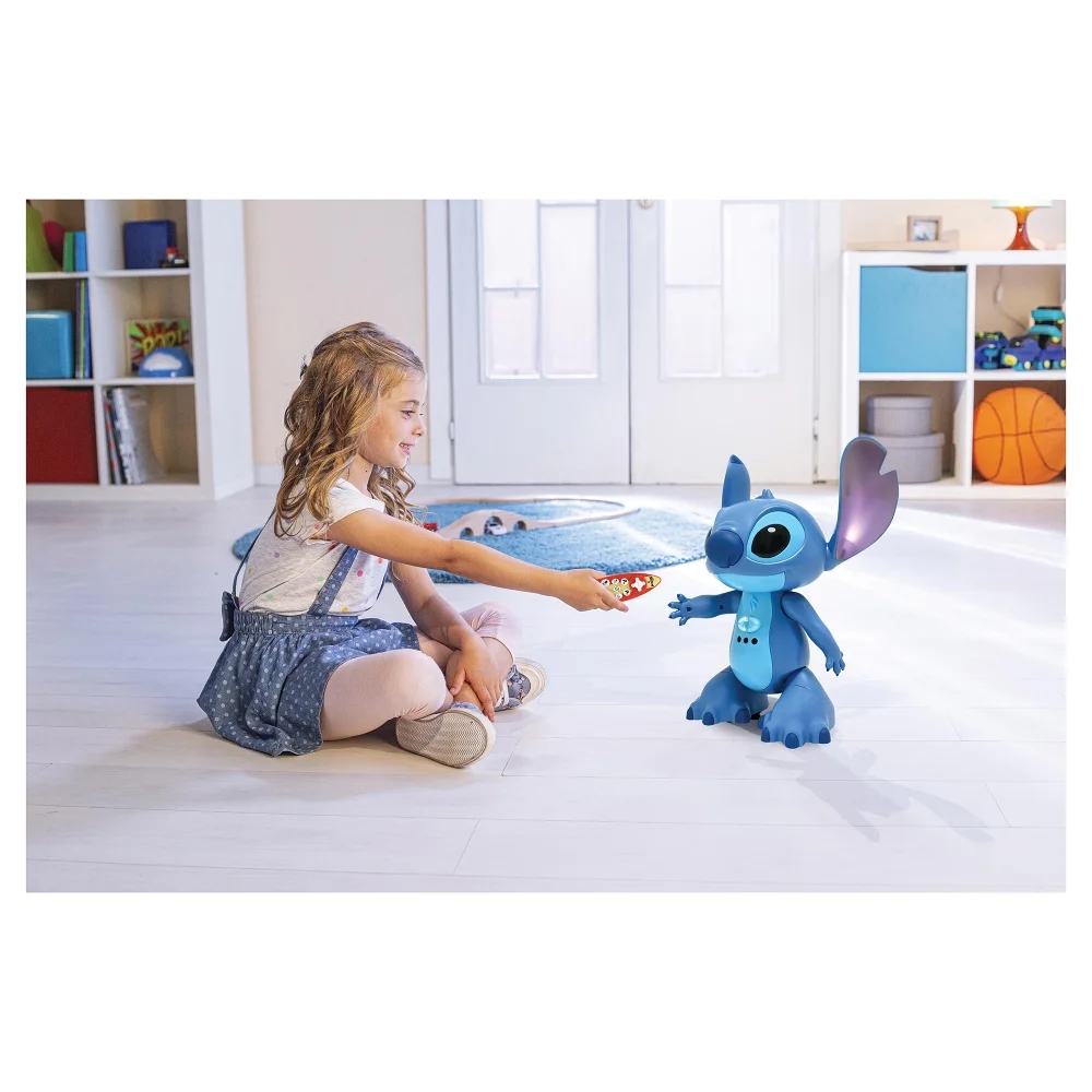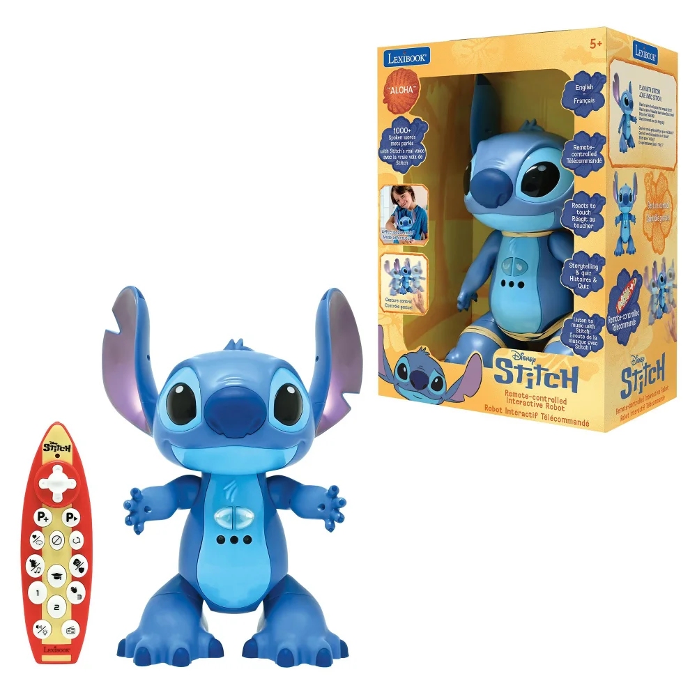 O produktuInteraktivní robot Stitch s originálním hlasem se stává dvojjazyčným kamarádem pro děti a nabízí nekonečnou zábavu v angličtině i němčině. Pohybuje se všemi směry, chodí nebo klouže, lze ho ovládat ovladačem ve tvaru surfu nebo gesty rukou. Je programovatelný, umí vyprávět minipříběhy, zpívat, tancovat a děti s ním mohou zahrát kvízy ze světa Lilo & Stitch. Reaguje na dotyk, takže působí živě a přátelsky. Díky hudbě a světelným efektům rozzáří každou hru.Stitch funguje na tři baterie AA/LR06 baterie (nejsou součástí balení) a díky automatickému režimu spánku šetří energii během nečinnosti.Tato hračka podporuje motoriku, logické myšlení i jazykový rozvoj a zároveň děti přirozeně učí hrou, zábavou a interakcí.Klíčové vlastnostiInteraktivní Stitch s originálním hlasemDvojjazyčný režim: angličtina a němčina (jazykové nastavení je fixní)Ovladač ve tvaru surfu + ovládání gestyChůze i klouzavý pohyb ve všech směrech (2 rychlosti)Programovatelné funkce pro učení hrouVypráví minipříběhy, zpívá, tančí a nabízí kvízy ze světa Lilo & Stitch1000+ mluvených slovReaguje na dotyk jako živý kamarádSvětelné a hudební efektyAutomatický režim spánku pro úsporu energieFunguje na 3× AA/LR06 baterie (nejsou součástí)Rozměry: 21,5 x 14,5 x 28,8 cmO výrobci Francouzský výrobce moderní elektroniky pro děti S více než čtyřicetiletou historií se Lexibook etabloval jako evropský lídr v oblasti elektronických hraček a vzdělávacích produktů pro děti. Drží se trendů a moderních technologií, aby děti nejen bavil, ale i podporoval jejich učení a kreativitu. Hračky zdobí nejznámější postavy dětských pohádek a příběhů, díky kterým si Lexibook získal oblibu dětí po celém světě.