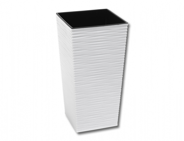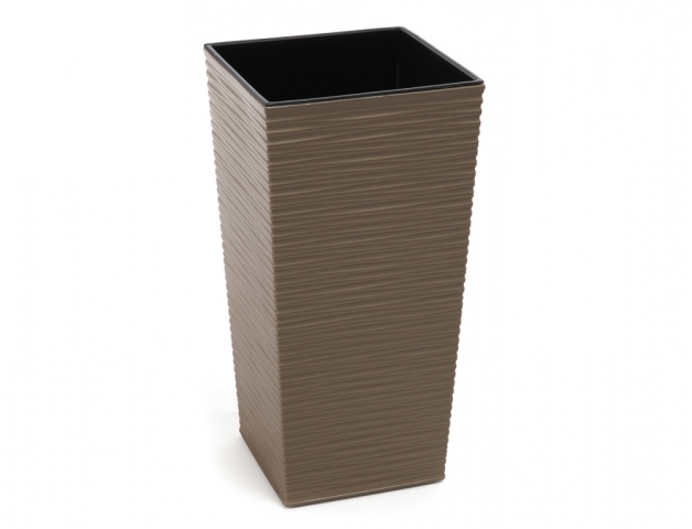 Vysoký plastový obal na květník s vnitřní vložkou má unikátní vzhled připomínající proutí. Je vhodný do interiéru i venkovních prostor, je odolný vůči UV záření. Barva: hnědo šedá. Šířka: 30 cm, výška: 57 cm, hloubka: 30 cm.