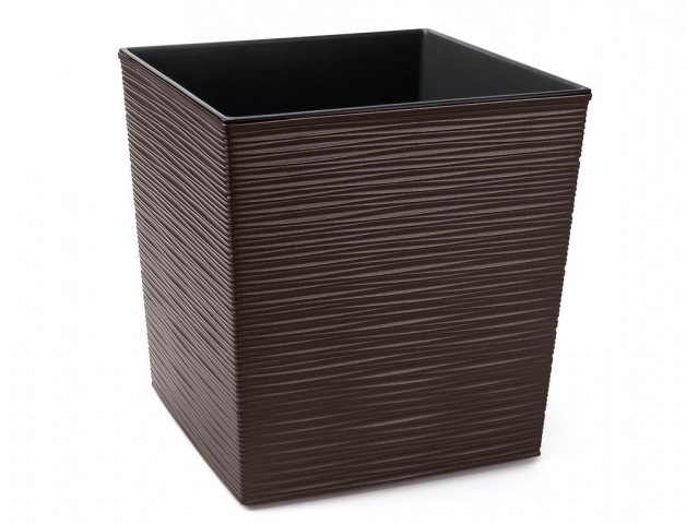 Obal na květník s vyjímatelnou vložkou je vyroben z kvalitního tvrdého plastu. Vzhled připomíná proutí. Barva: tmavě hnědá. Rozměry: 25 x 25 x 26 cm.